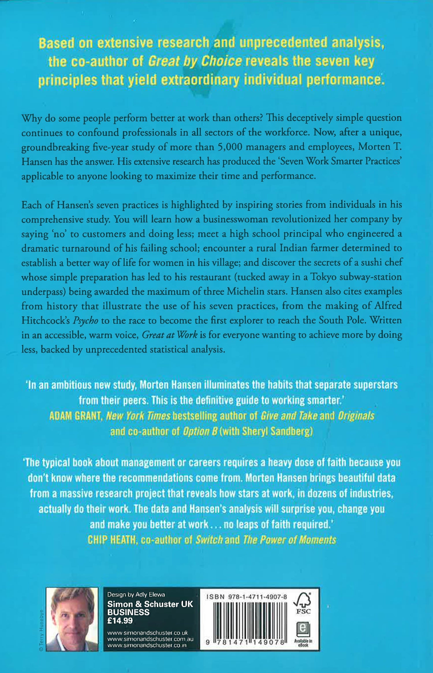 Why do some people perform better at work than others? This deceptively simple question continues to confound professionals in all sectors of the workforce. Now, after a unique, five-year study of more than 5,000 managers and employees, Morten Hansen reveals the answers in his 'Seven Work Smarter Practices' that can be applied by anyone looking to maximise their time and performance.