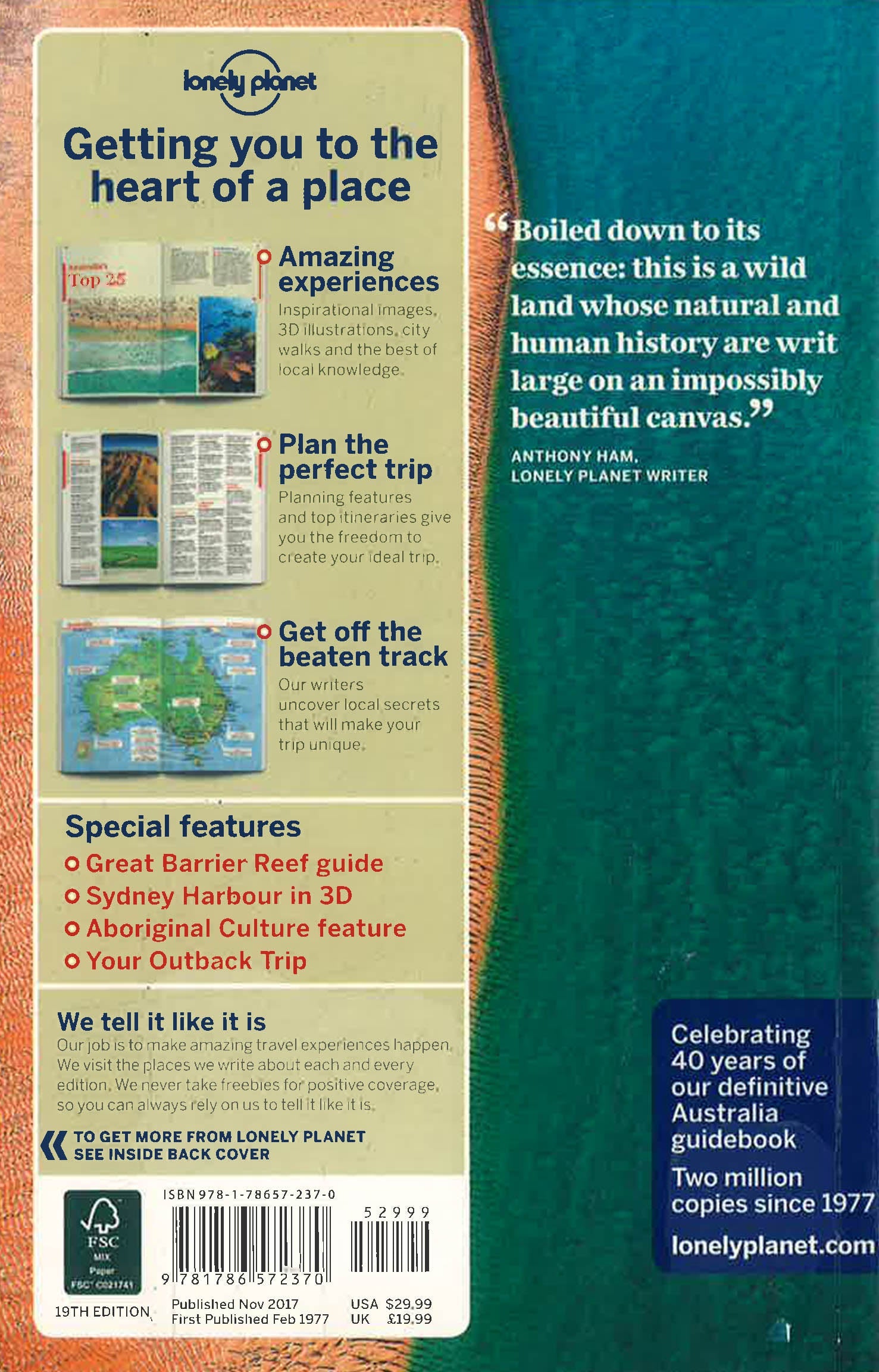 The Perfect Choice: Lonely Planet Australia, our most comprehensive guide to Australia, is perfect for both exploring top sights and taking roads less travelled.