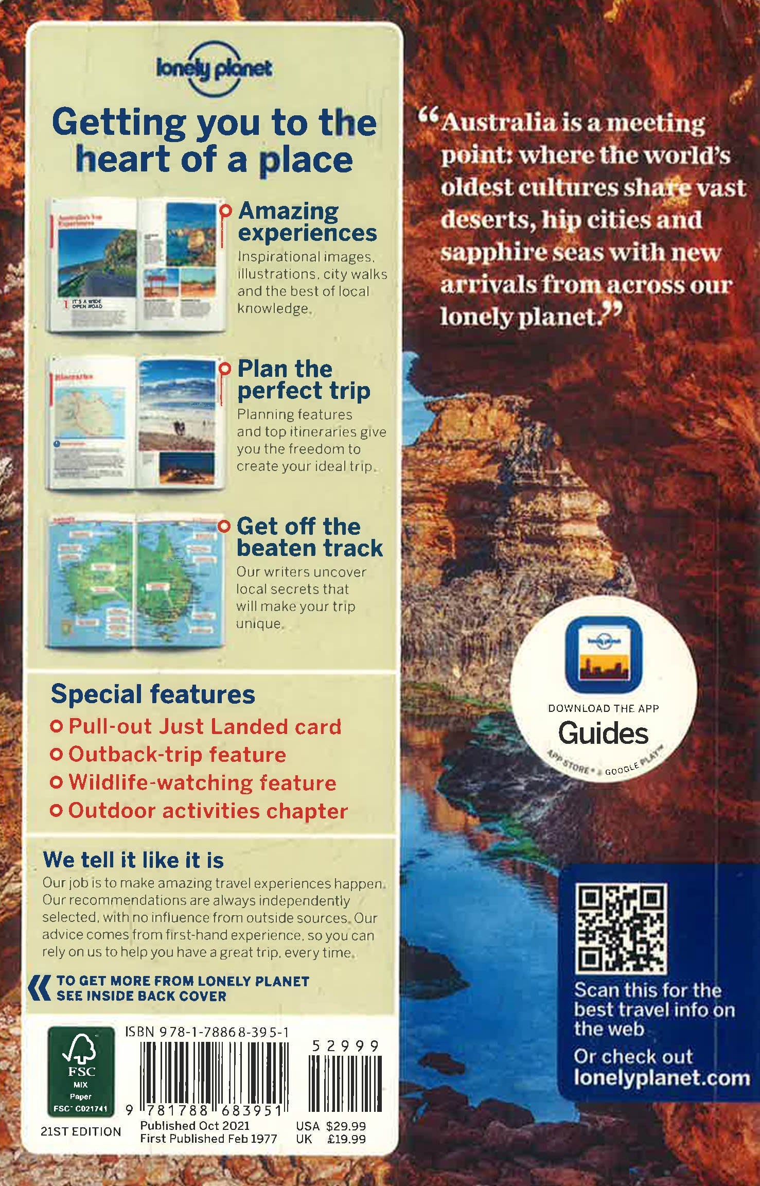 The Perfect Choice: Lonely Planet’s Australia, our most comprehensive guide to Australia, is perfect for both exploring top sights and taking roads less travelled.