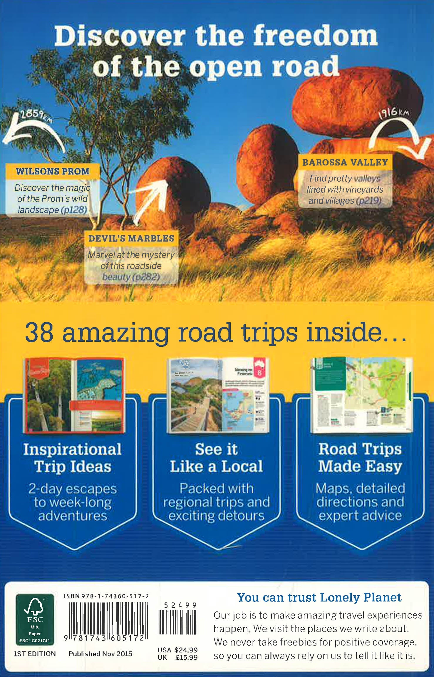 - Looking for a road trip guide to a particular Australian region? Check out Lonely Planet's Road Trips guides to Coastal Victoria, Tasmania, and Outback Australia.