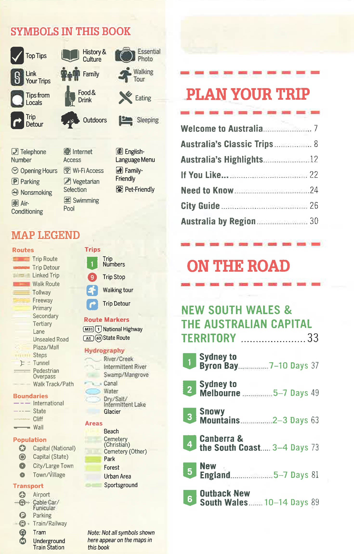 - Planning an Australia trip sans car? Lonely PlanetAustralia, our most comprehensive guide to Australia, is perfect for exploring both top sights and lesser-known gems, or check out Discover Australia, a photo-rich guide to the country's most popular attractions.