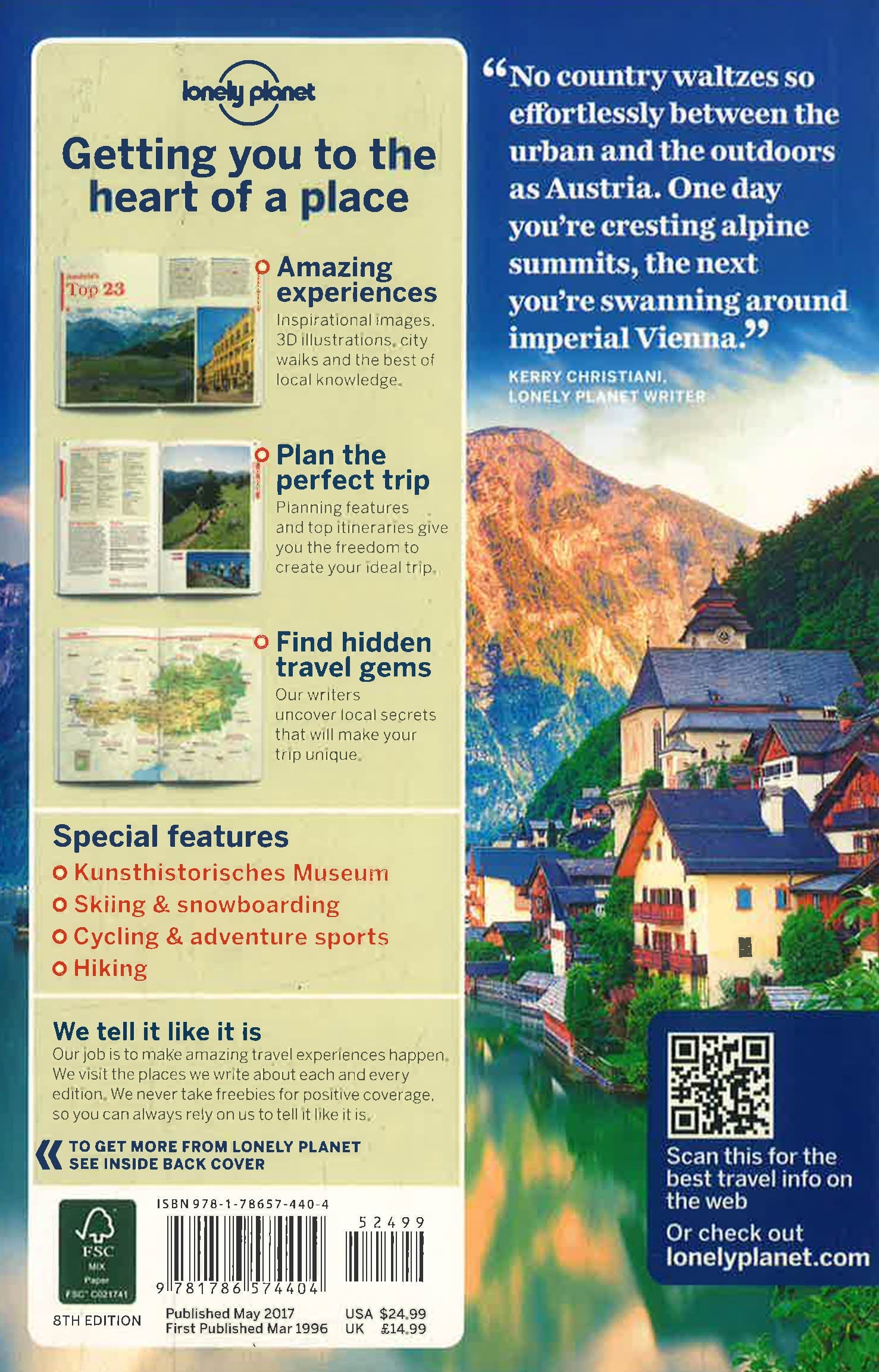 Lonely Planet: The world's leading travel guide publisher Lonely Planet Austria is your passport to the most relevant, up-to-date advice on what to see and skip, and what hidden discoveries await you. Stroll the palaces and cathedrals of Vienna, ski the slopes of the Austrian Alps, or take a lazy trip through the valleys and lakes of the countryside -all with your trusted travel companion. Get to the heart of Austria and begin your journey now! Inside Lonely Planet Austria Travel Guide: Colour maps and images throughout Highlights and itineraries help you tailor your trip to your personal needs and interests Insider tips to save time and money and get around like a local, avoiding crowds and trouble spots Essential info at your fingertips - hours of operation, phone numbers, websites, transit tips, prices Honest reviews for all budgets - eating, sleeping, sight-seeing, going out, shopping, hidden gems that most guidebooks miss Cultural insights give you a richer, more rewarding travel experience - history, music, architecture Free, convenient pull-out Vienna map (included in print version), plus over 51 maps C(more...)