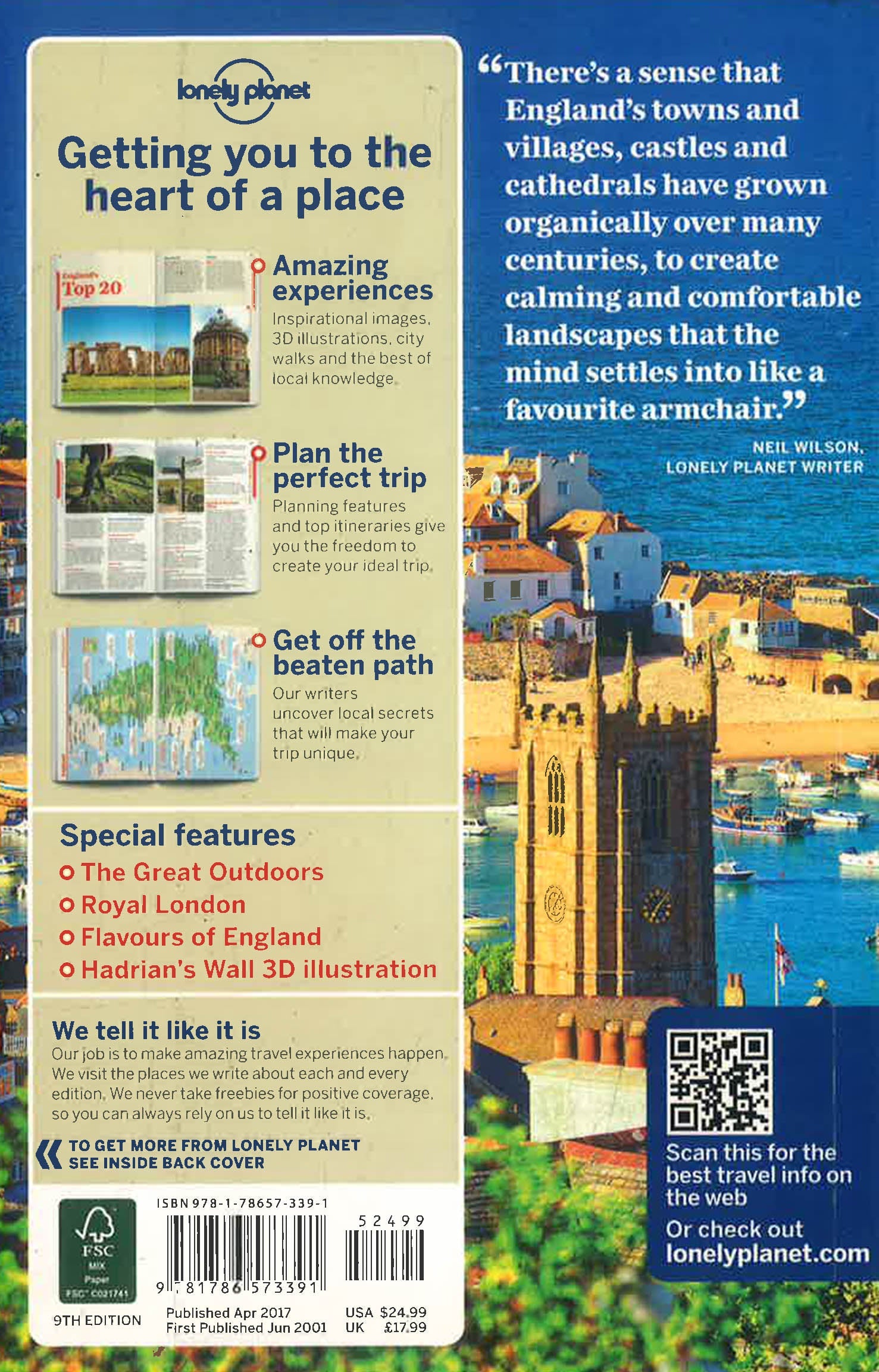 England's most appealing feature is the aura of deeprooted history that emanates from almost every corner of the land. There's a sense that its towns and villages, castles and cathedrals have grown organically over many centuries, to create calming and comfortable landscapes that the mind settles into like a favourite armchair. * The Great Outdoors feature * Royal London chapter * Flavours of England guide for foodies * Hadrian's Wall 3D illustration