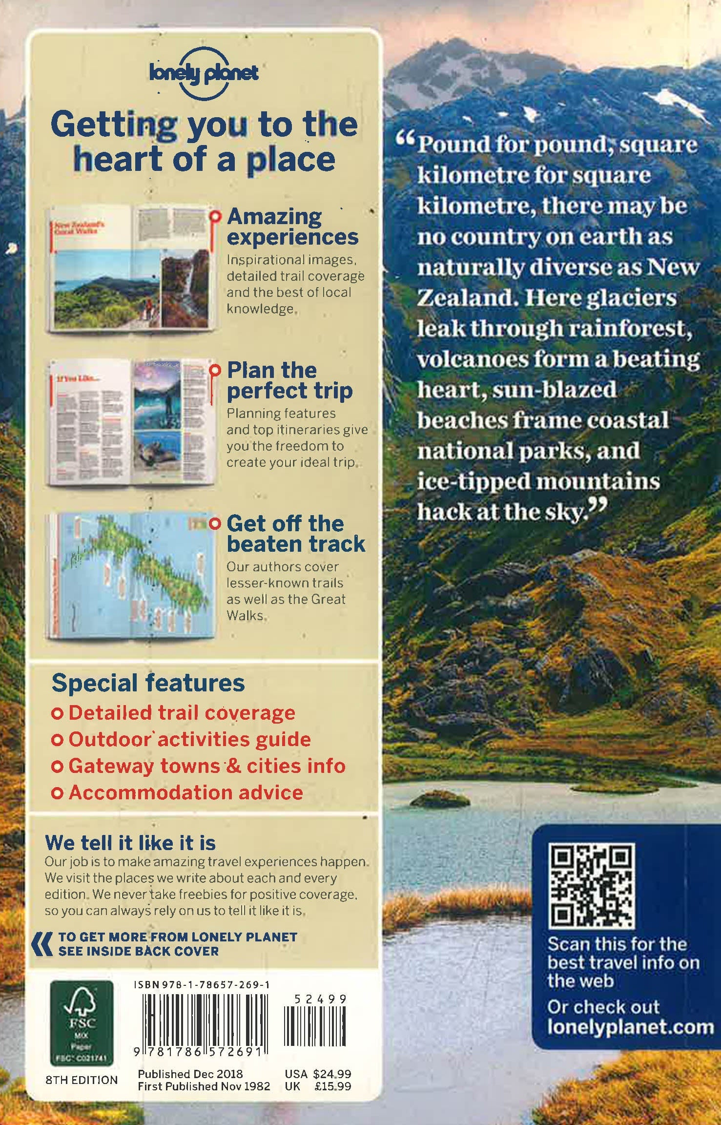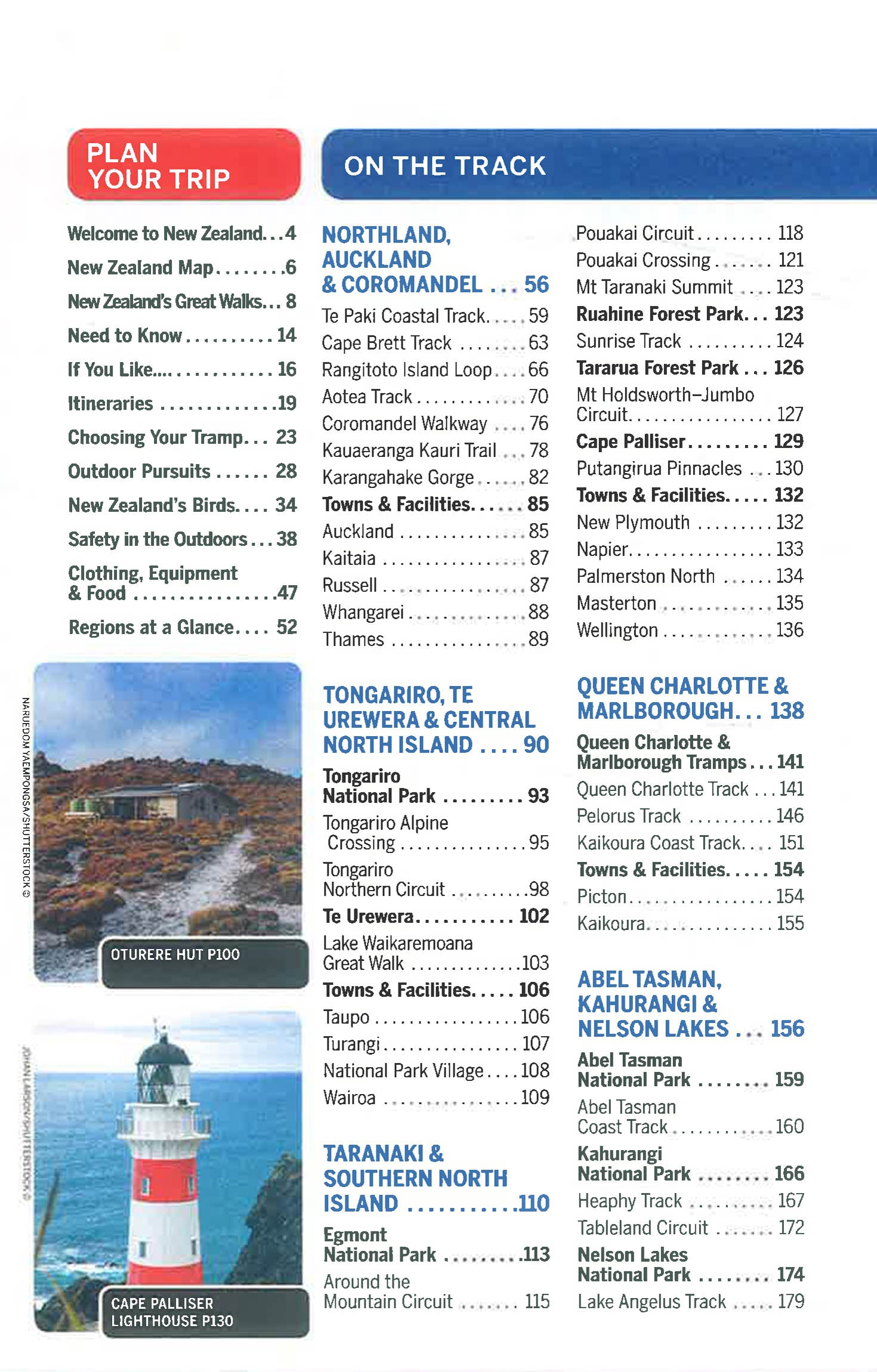 - Covers Northland, Auckland, Coromandel, Tongariro, Urewera, Central North Island, Taranaki, Whanganui, Around Wellington, Queen Charlotte, Marlborough, Abel Tasman, Kahurangi, Nelson Lakes, Canterbury, Arthur's Pass, Aoraki/Mt Cook, West Coast, Mt Aspiring National Park, Around Queenstown, Fiordland, Stewart Island/Rakiura.