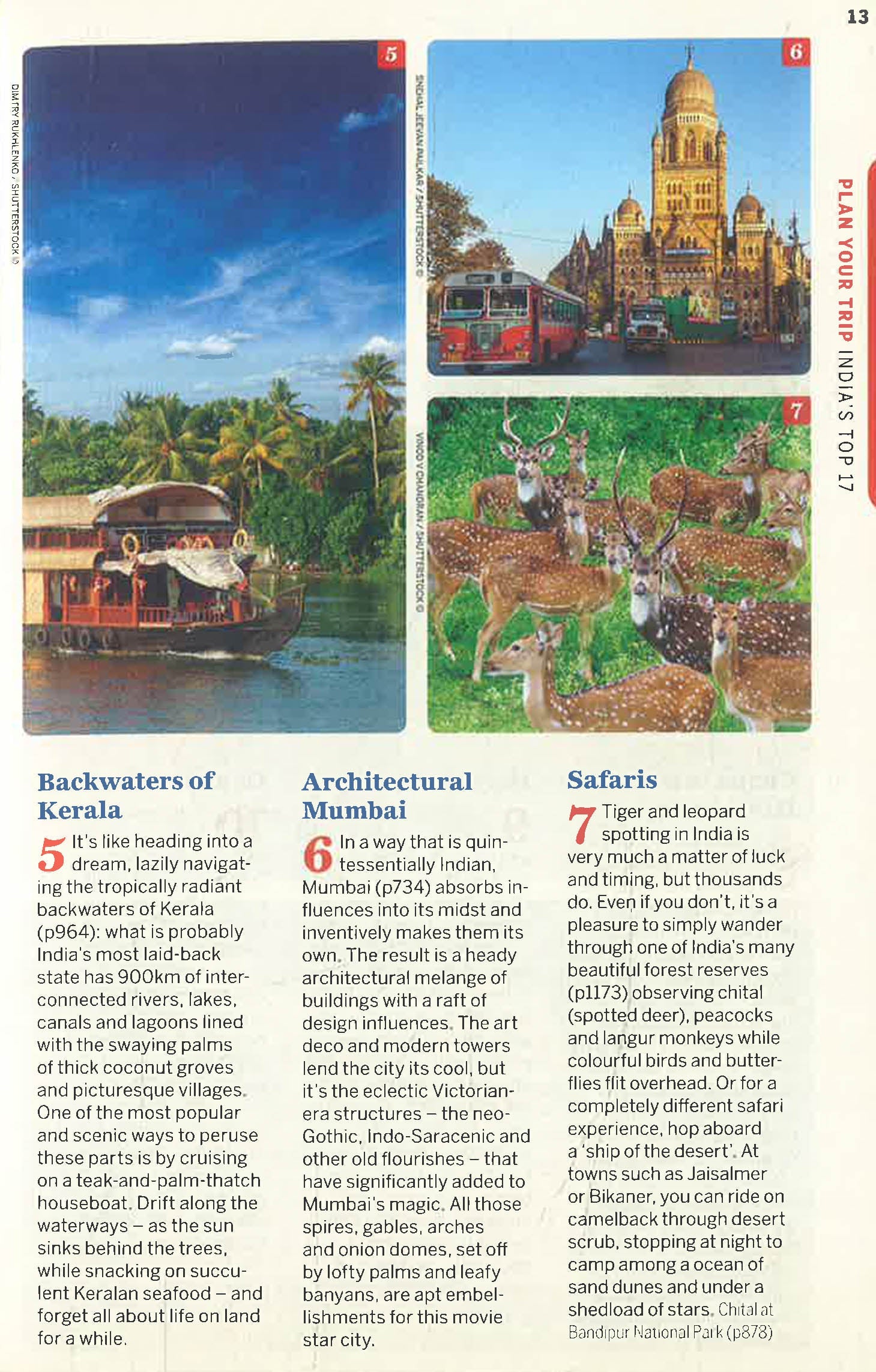 Looking for a guide focused on South India and Kerala, Goa and Mumbai or Rajasthan, Delhi & Agra? Check out Lonely Planet's South India & Kerala guide,Goa & Mumbaiguide, and Rajasthan, Delhi & Agraguide for a comprehensive look at all these destinations haveto offer; or Best of India, a photo-rich guide to the country's most popular attractions.