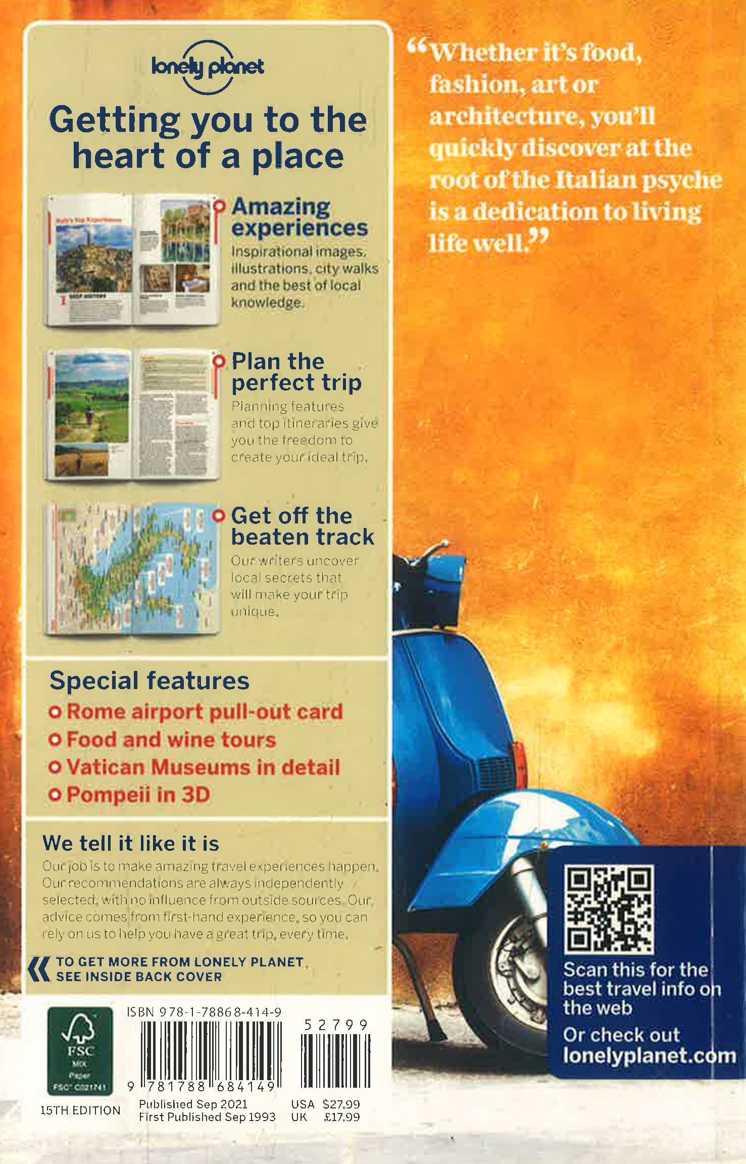 The Perfect Choice: Lonely Planet’s Italy, our most comprehensive guide to Italy, is perfect for both exploring top sights and taking roads less travelled.