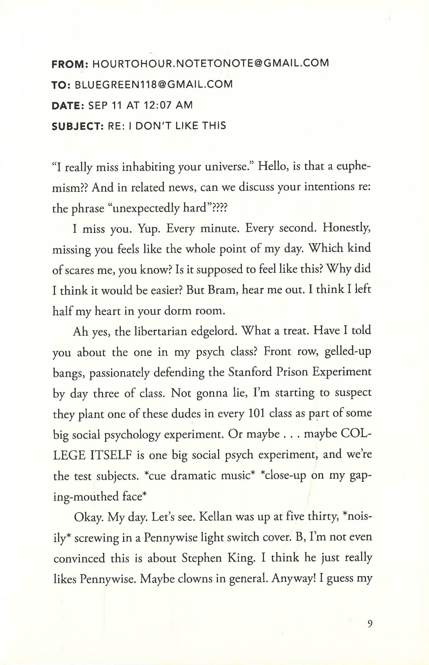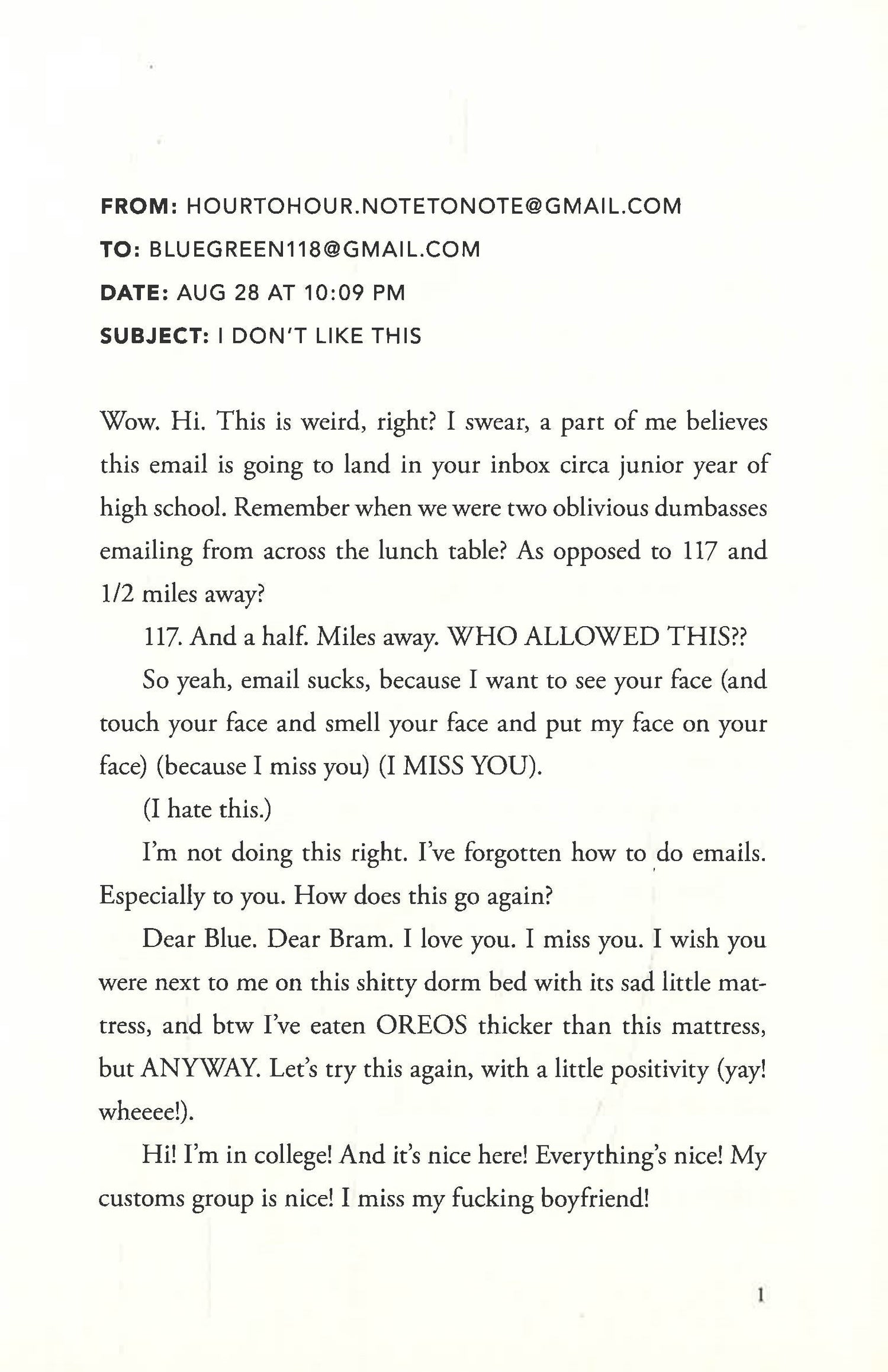Now the Creekwood High crew are first years at different colleges, navigating friendship and romance the way their story began—on email.