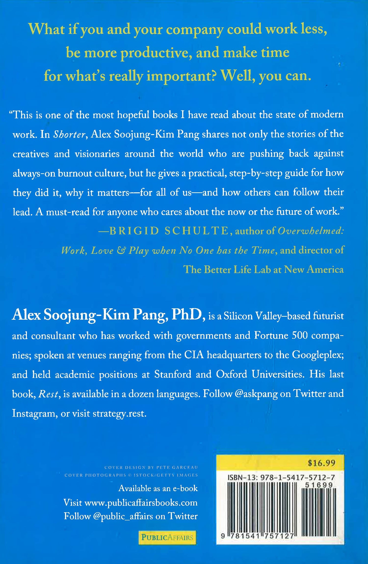 But what if there is another way? Shorter tells the story of entrepreneurs and leaders all over the world who have discovered how to shrink the workweek without cutting salaries or sacrificing productivity or revenues. They show that by reducing distractions, eliminating inefficiencies, and creating time for high-quality focus and collaboration, 4-day workweeks can boost recruitment and retention, make leaders more thoughtful and companies more sustainable, and improve work-life balance. Using design thinking, a business and product development process pioneered in Silicon Valley, futurist and consultant Alex Pang creates a step-by-step guide for readers to redesign their workdays.