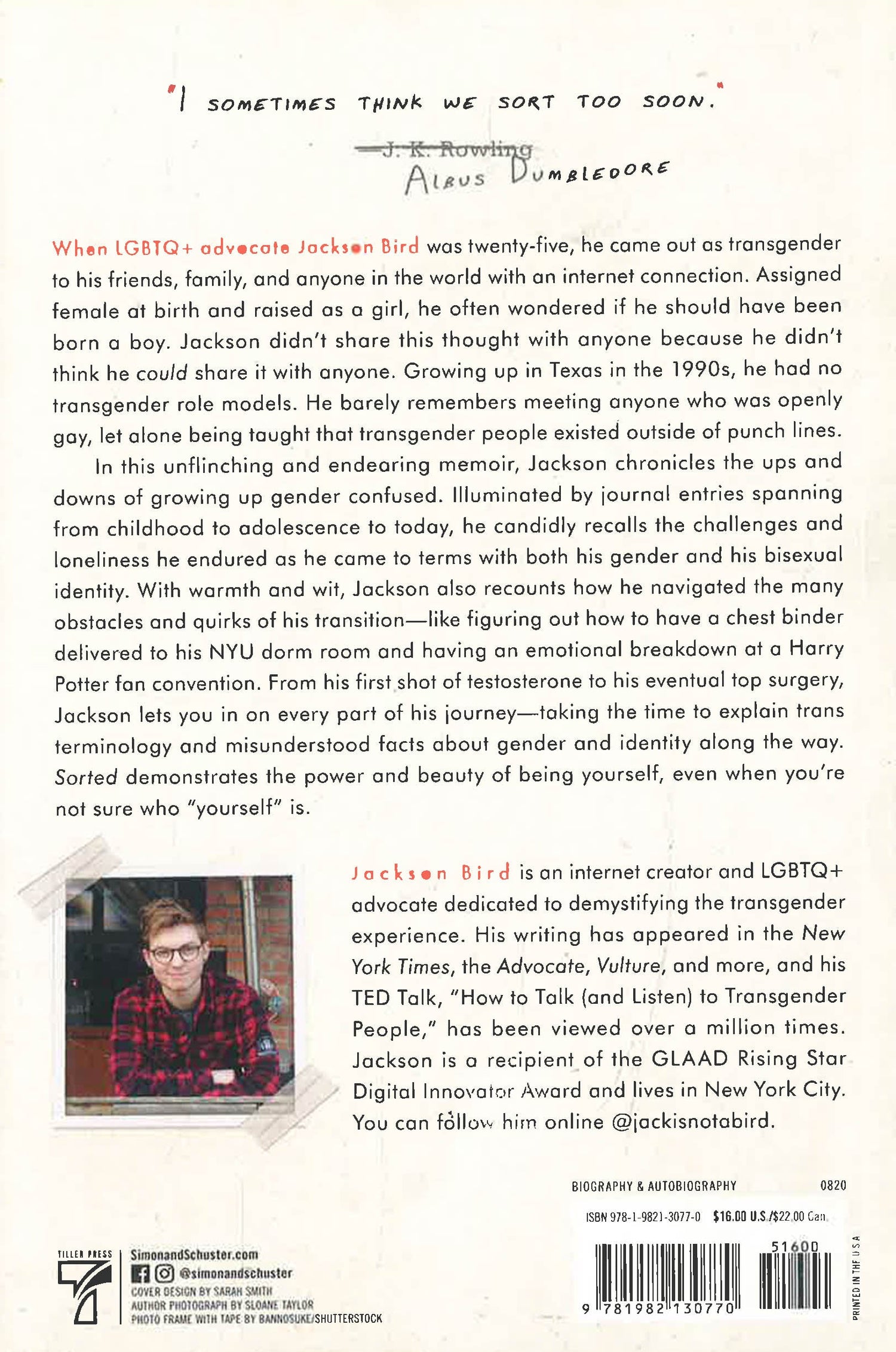 With warmth and wit, Jackson also recounts how he navigated the many obstacles and quirks of his transition—like figuring out how to have a chest binder delivered to his NYU dorm room and having an emotional breakdown at a Harry Potter fan convention. From his first shot of testosterone to his eventual top surgery, Jackson lets you in on every part of his journey—taking the time to explain trans terminology and little-known facts about gender and identity along the way.