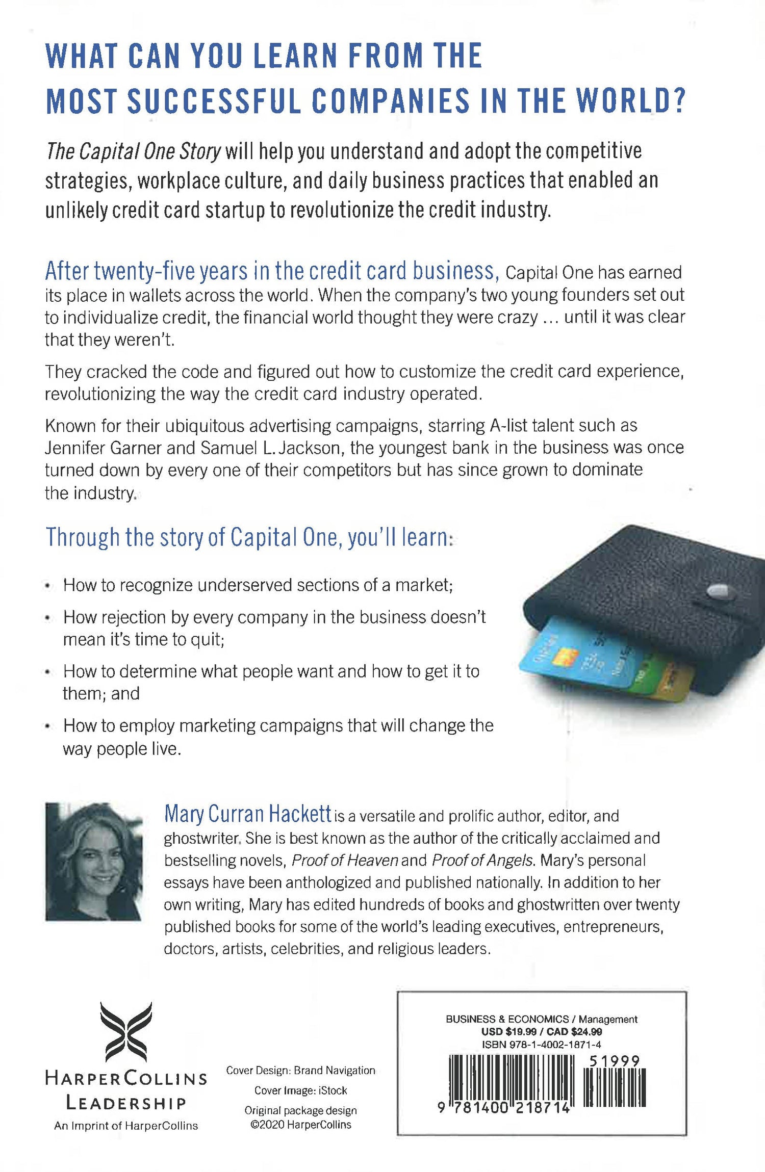 What can you learn from the most successful companies in the world? The Capital One Story will help you understand and adopt the competitive strategies, workplace culture, and daily business practices that enabled an unlikely credit card startup to revolutionize the credit industry.