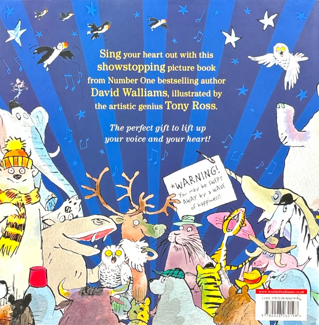 Sing your heart out with a whole choir of characters, in the showstopping new picture book from number one bestselling author David Walliams, illustrated by the artistic genius, Tony Ross!There’s more than one star of the show… In fact, there’s a whole choir of them!Warble the walrus LOVES to sing.Unfortunately, she is not very good at it! And when her atrocious warbling causes an avalanche, the other walruses leave her all alone.But when you SING like no-one is listening, SOMETIMES, they start to hear you…The perfect story for anyone who loves to laugh or sing, this brand-new story from David Walliams is a delightfully wonderful warble about doing what makes you HAPPY, and being LOUD about it!