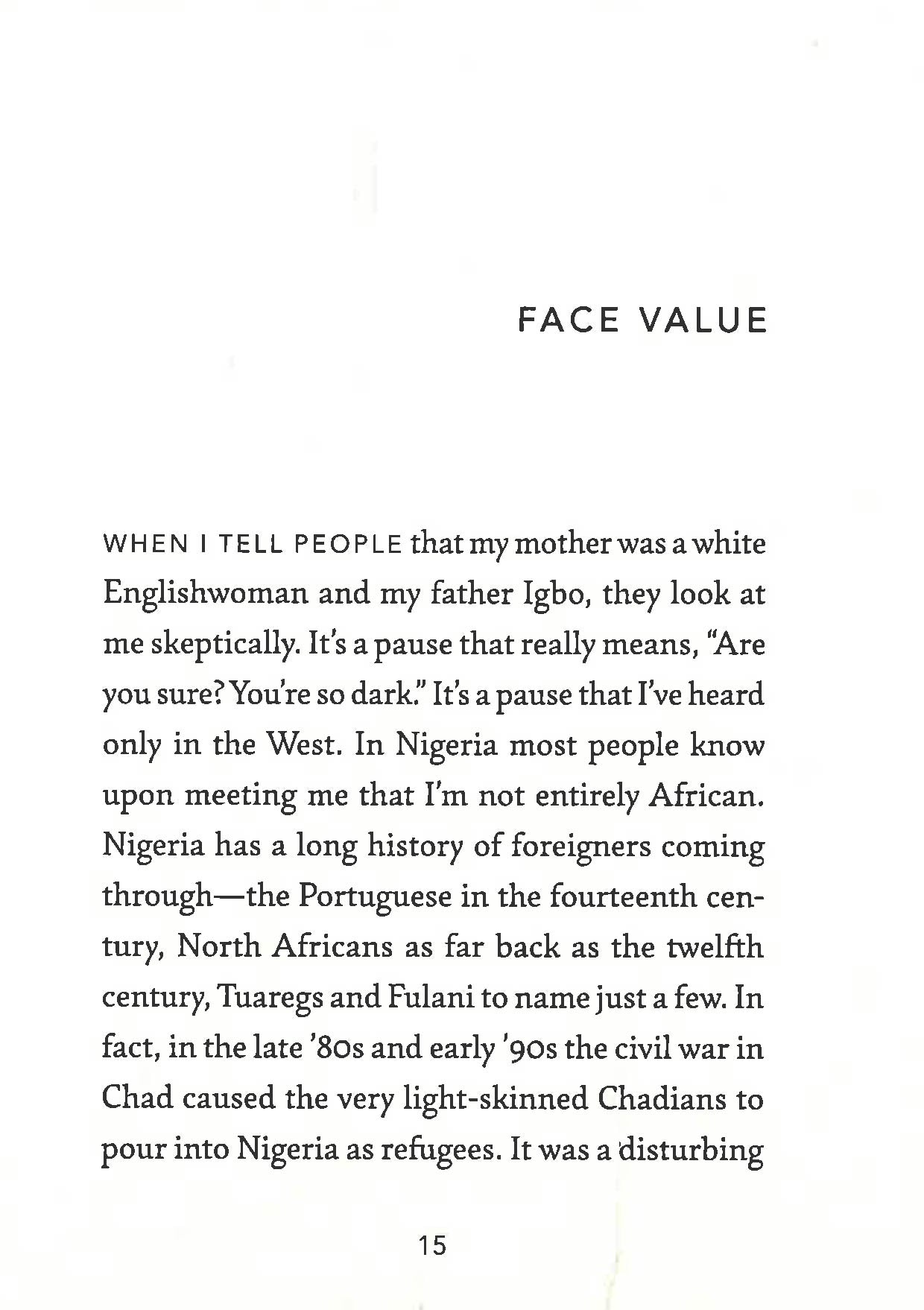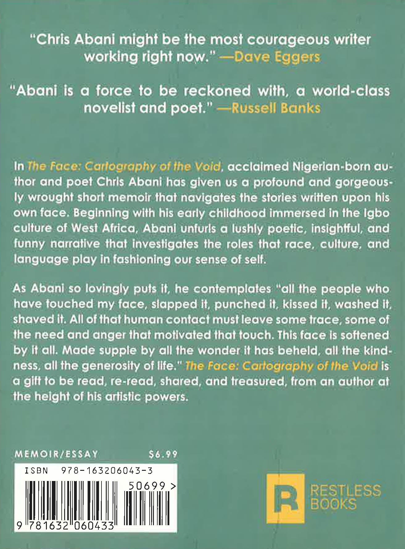 In The Face: Cartography of the Void, acclaimed Nigerian-born author and poet Chris Abani has given us a profound and gorgeously wrought short memoir that navigates the stories written upon his own face. Beginning with his early childhood immersed in the Igbo culture of West Africa, Abani unfurls a lushly poetic, insightful, and funny narrative that investigates the roles that race, culture, and language play in fashioning our sense of self.