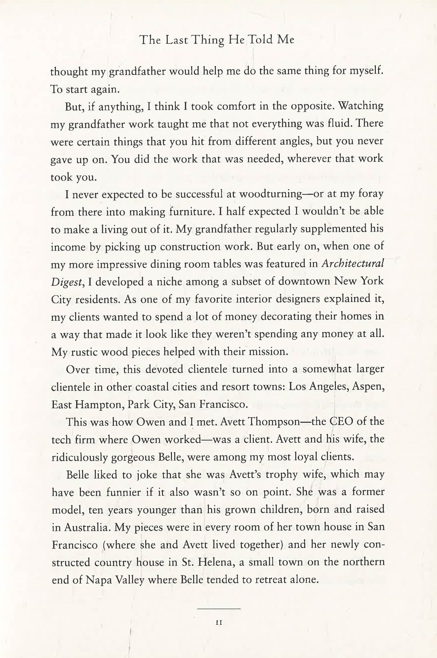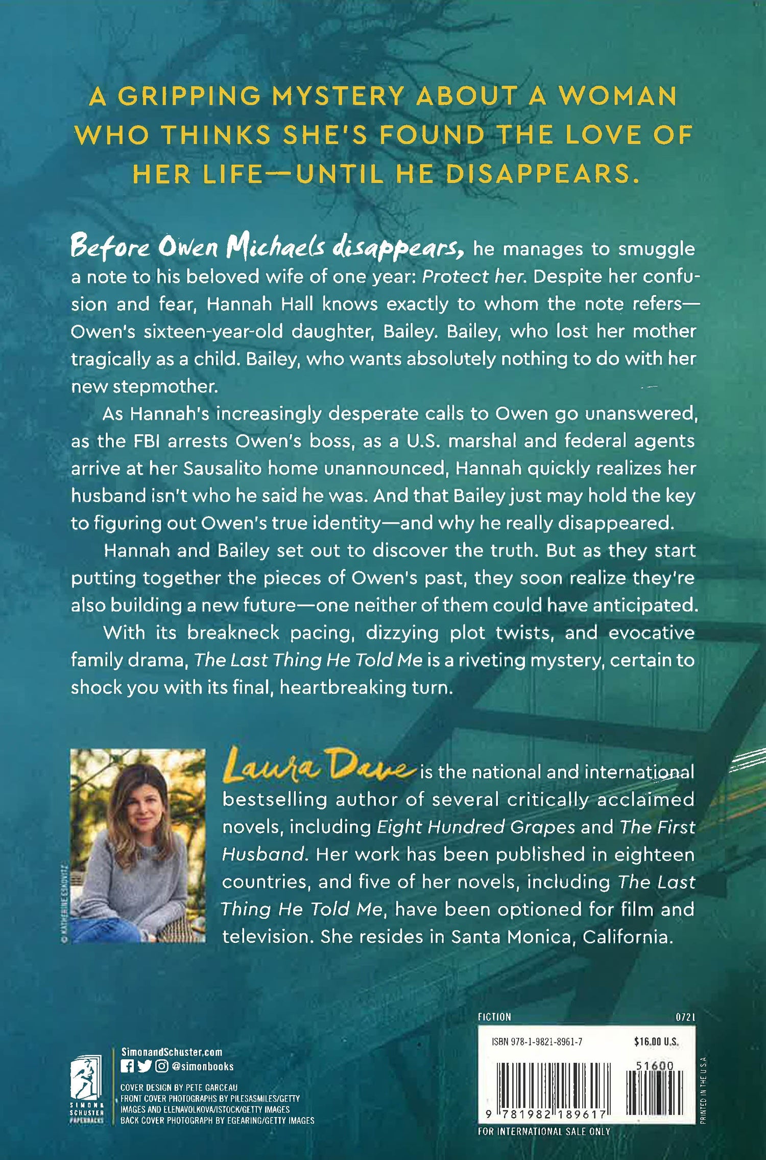 With its breakneck pacing, dizzying plot twists, and evocative family drama, The Last Thing He Told Me is a riveting mystery, certain to shock you with its final, heartbreaking turn.