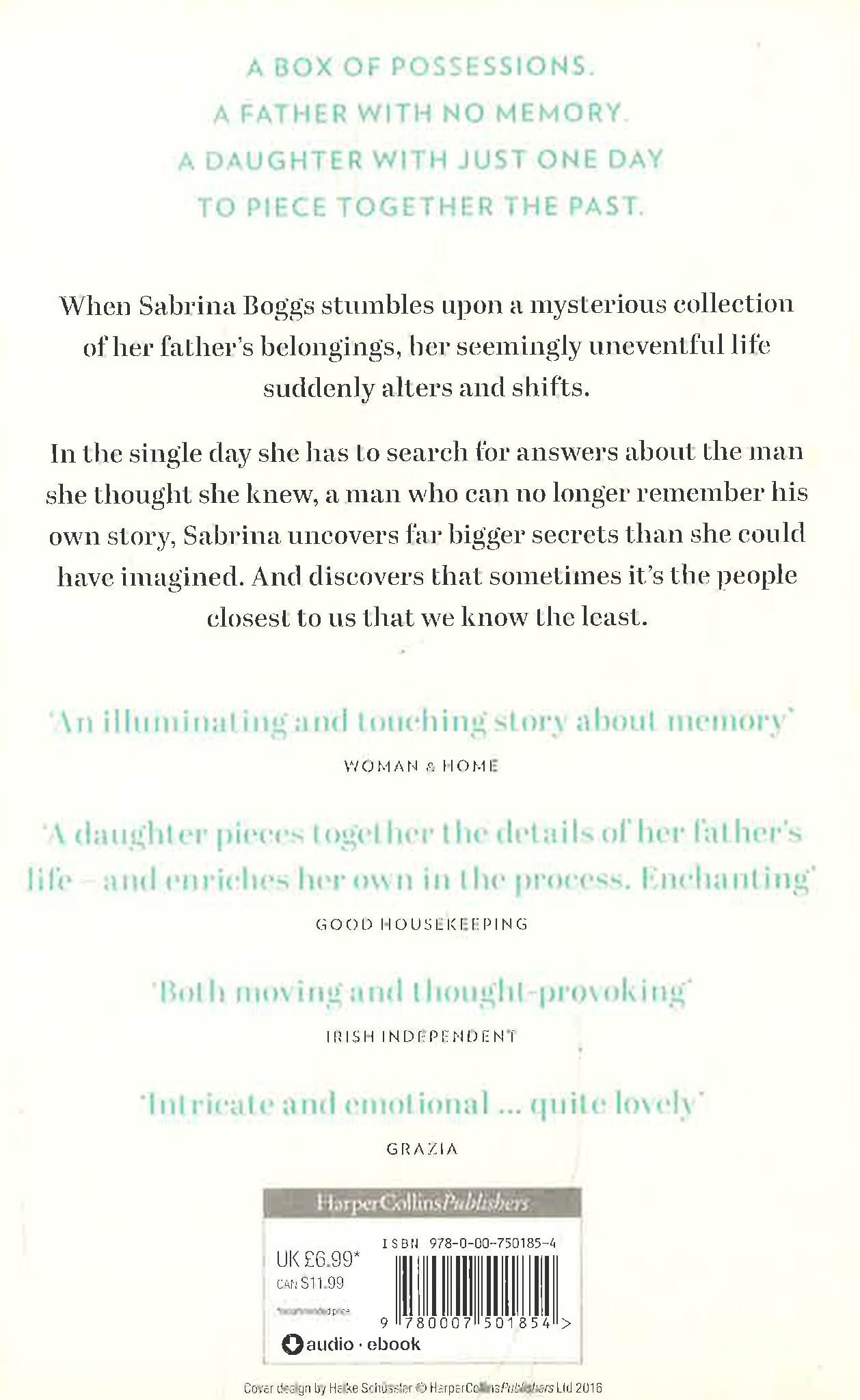 In the single day she has to search for answers about the man she thought she knew, a man who can no longer remember his own story, Sabrina uncovers far bigger secrets than she could have imagined. And discovers that sometimes it’s the people closest to us that we know the least.