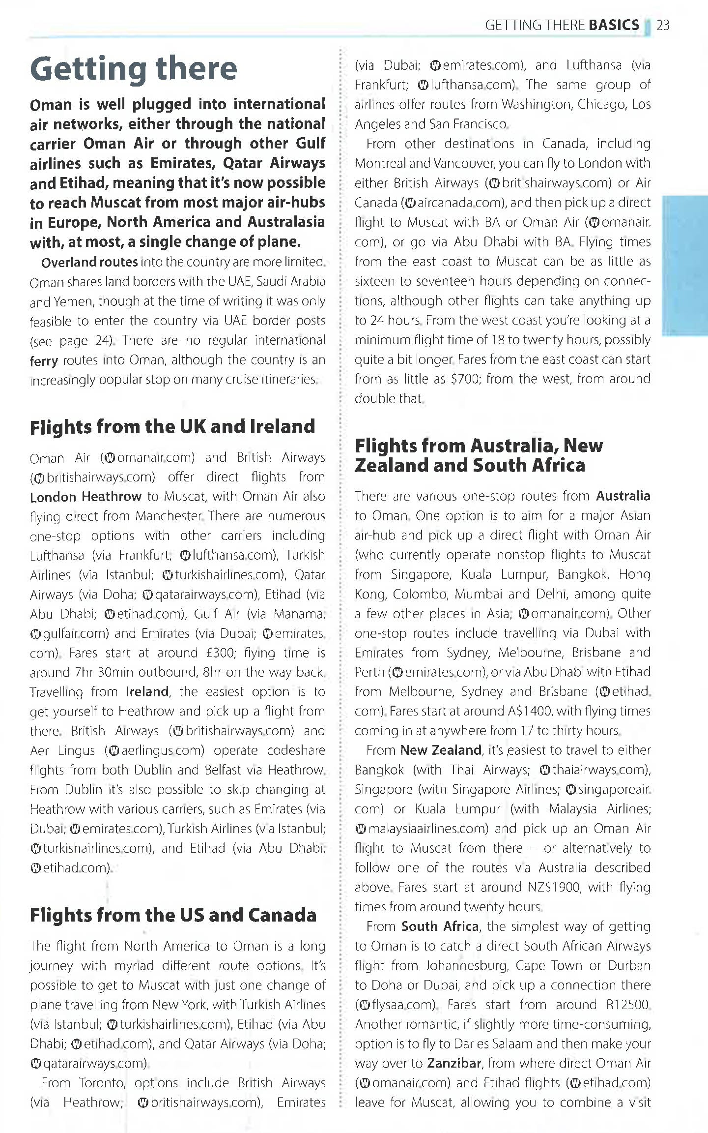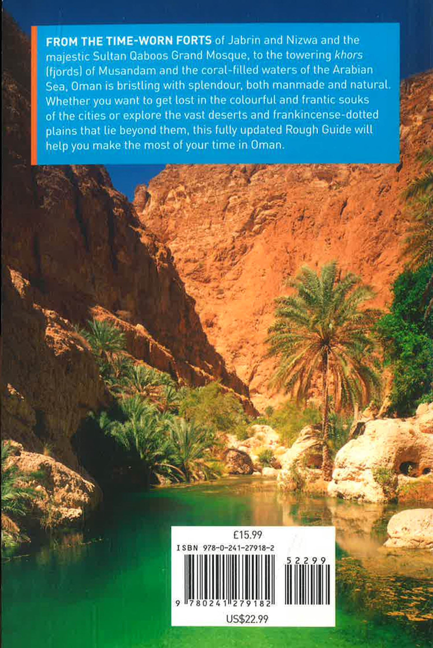 Areas covered include: Muscat; the Hajar mountains; Nizwa; Al Hamra; Al Batinah; Seeb; Barka; the Rustaq Loop; the Musandam peninsula;Khasab; Sharqiya; Sur; Saiq Plateau; Dhofar.
