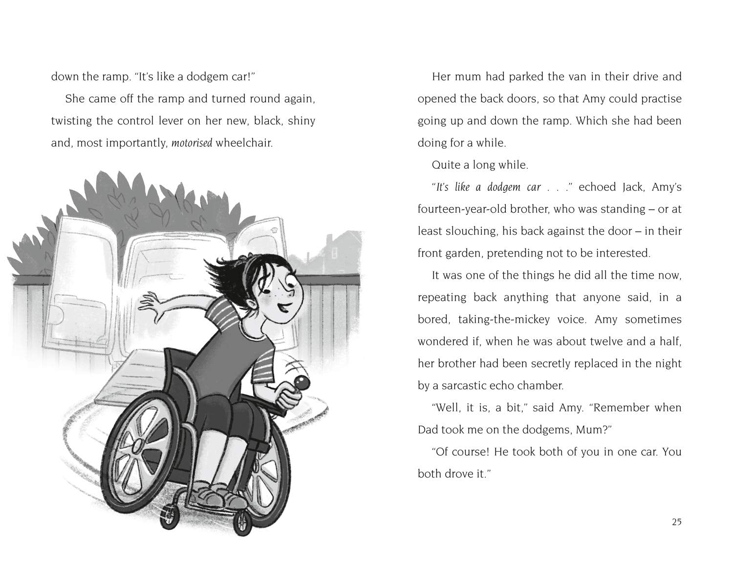 At its heart is the unforgettable Amy Taylor. Amy loves cars, and dreams of being a driver. But there’s a major catch: her slow old wheelchair with its broken wheel. When Amy finally gets a new electric one, it’s exciting… at first.