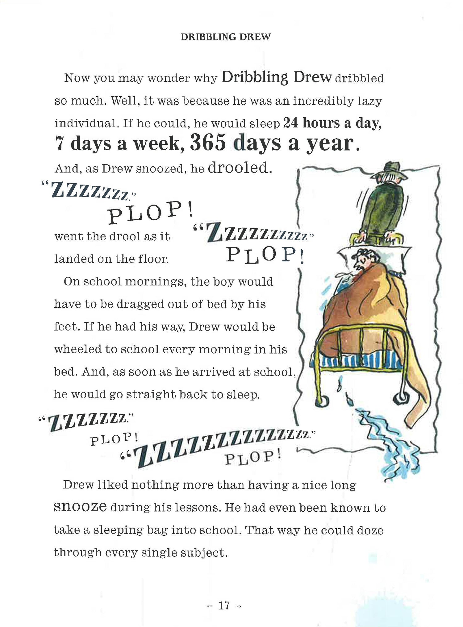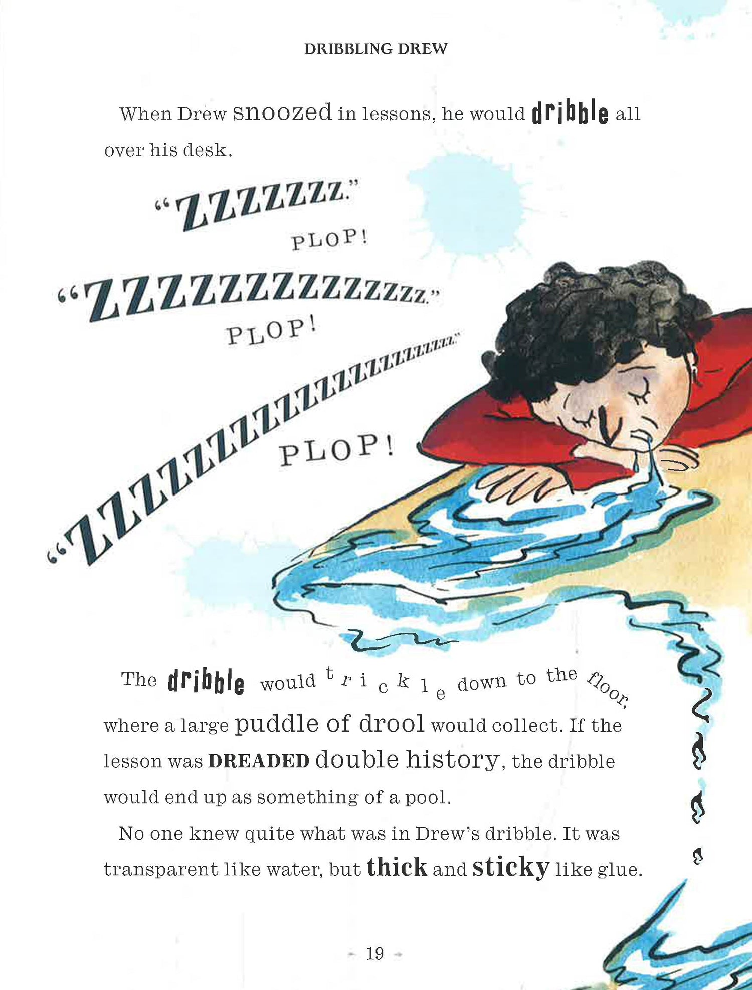 - Or Dribbling Drew – a boy whose drool gets him into trouble on a school trip!