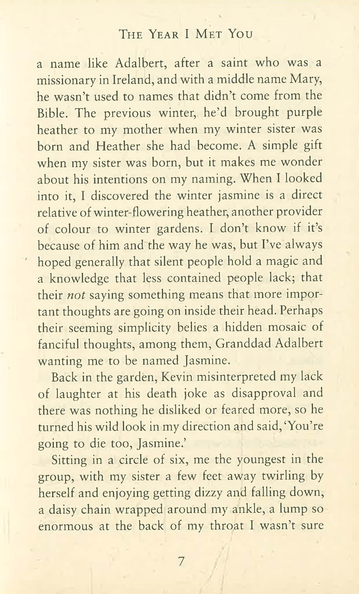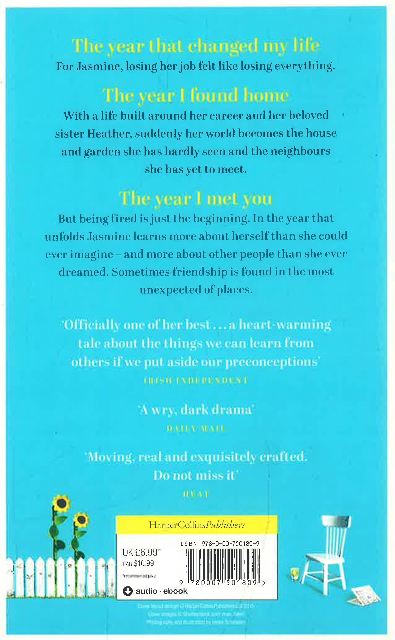*Winner of the Irish Popular Fiction Book of the Year*A thoughtful, captivating and ultimately uplifting novel from this uniquely talented authorThe year that changed my life. For Jasmine, losing her job felt like losing everything.The year I found home. With a life built around her career and her beloved sister Heather, suddenly her world becomes the house and garden she has hardly seen and the neighbours she has yet to meet.The year I met you. But being fired is just the beginning for Jasmine. In the year that unfolds she learns more about herself than she could ever imagine – and more about other people than she ever dreamed. Sometimes friendship is found in the most unexpected of places.