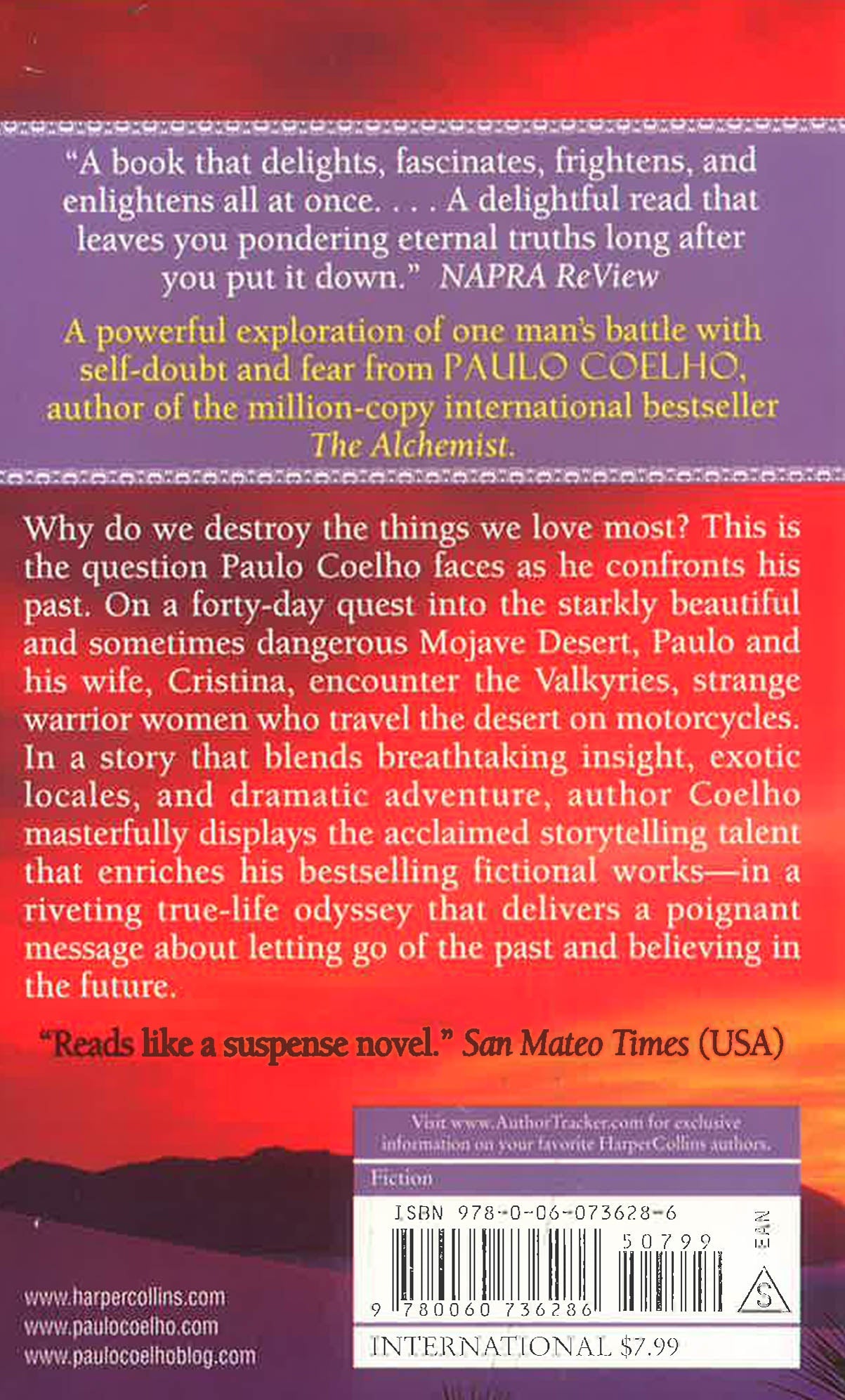 Why is it that we destroy the things we love most? This is the question Paulo Coelho faces in this touching story about his confrontation with his past. In The Valkyries, Paulo and his wife, Cristina, embark on a forty-day quest into the starkly beautiful and sometimes dangerous Mojave Desert, where they encounter the Valkyries, strange warrior women who travel the desert on motorcycles. A masterful blend of the exotic locales, dramatic adventure, and stark storytelling for which Coelho’s fictional works are renowned, this true-life odyssey is at once a modern-day adventure story and a poignant message about letting go of the past and believing in the future.