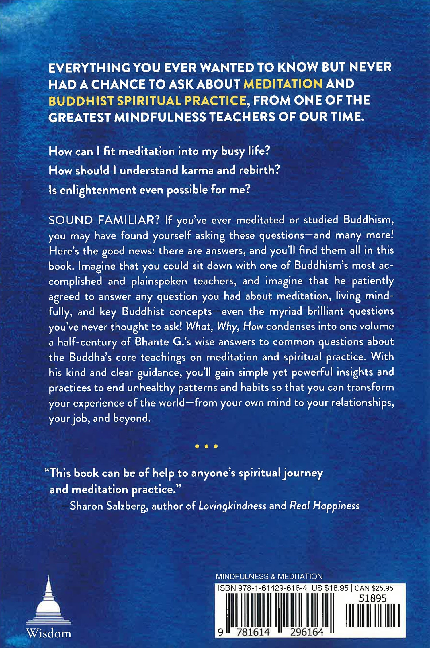 Sound familiar? If you've ever meditated or studied Buddhism, you may have found yourself asking these questions--and many more! Here's the good news: there are answers, and you'll find them all in this book. Imagine that you could sit down with one of Buddhism's most accomplished and plainspoken teachers--and imagine that he patiently agreed to answer any question you had about meditation, living mindfully, and key Buddhist concepts--even the myriad brilliant questions you've never thought to ask! What, Why, How condenses into one volume a half-century of Bhante G.'s wise answers to common questions about the Buddha's core teachings on meditation and spiritual practice. With his kind and clear guidance, you'll gain simple yet powerful insights and practices to end unhealthy patterns and habits so that you can transform your experience of the world--from your own mind to your relationships, your job, and beyond.