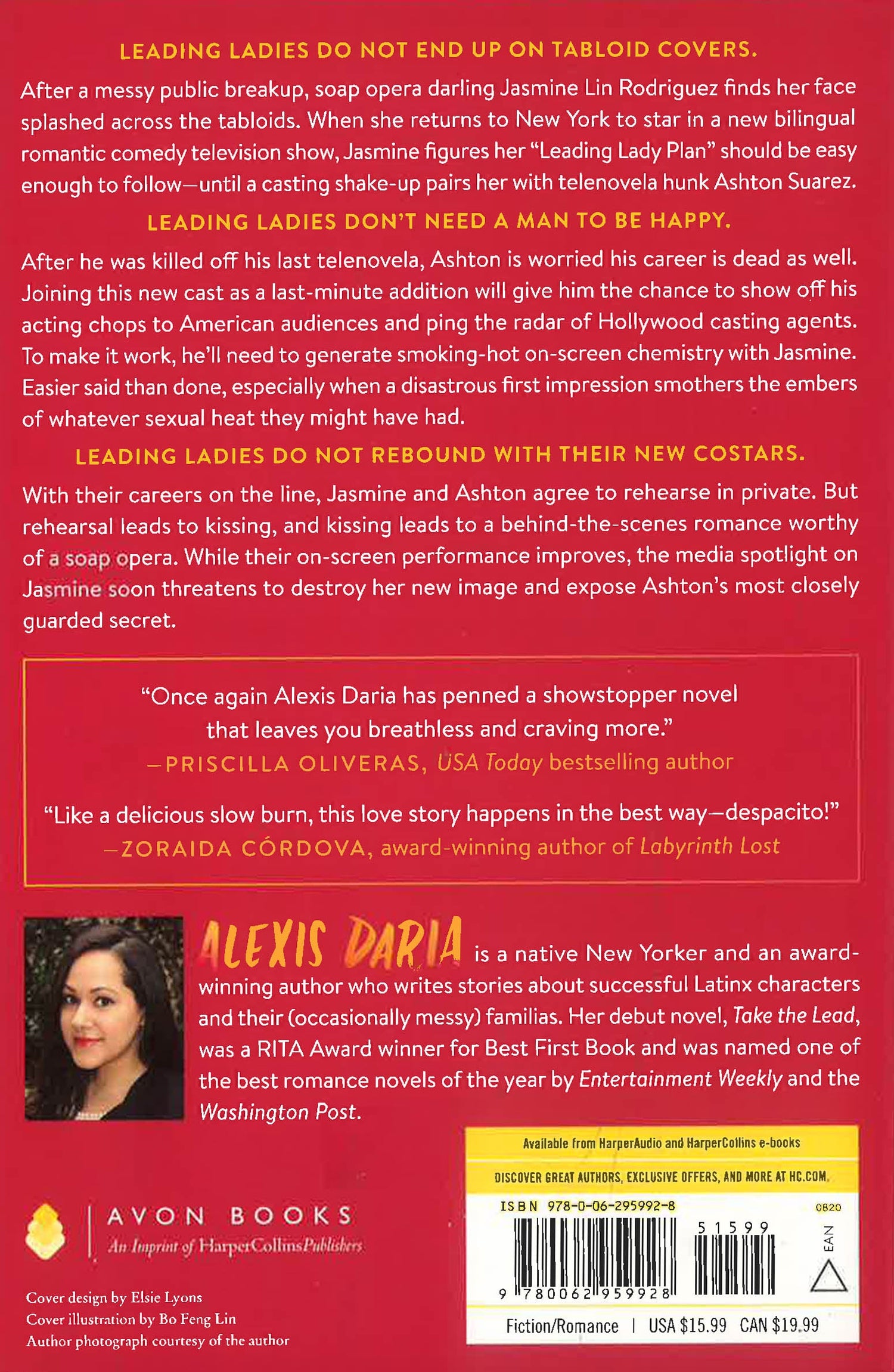 After a messy public breakup, soap opera darling Jasmine Lin Rodriguez finds her face splashed across the tabloids. When she returns to her hometown of New York City to film the starring role in a bilingual romantic comedy for the number one streaming service in the country, Jasmine figures her new “Leading Lady Plan” should be easy enough to follow—until a casting shake-up pairs her with telenovela hunk Ashton Suárez.