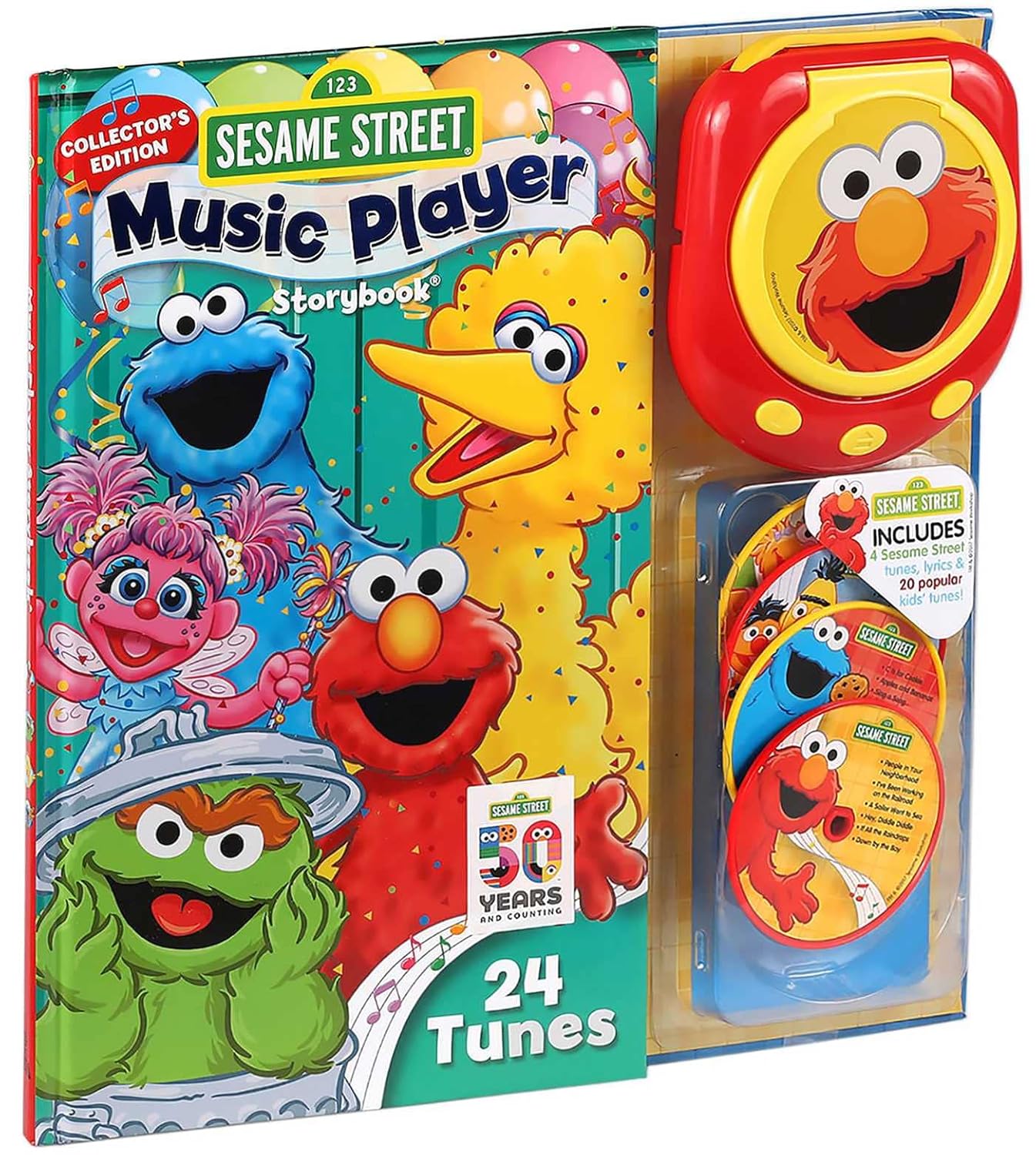 Celebrate Sesame Street’s 50th anniversary with this special-edition Music Player Storybook. Inside, preschoolers will find a delightful mix of stories, lyrics, and popular beloved kids’ tunes. Featured on the four play CDs are favorite instrumental songs from the TV show (“Rubber Duckie,” “C Is for Cookie,” “Sesame Street Theme,” and “People in Your Neighborhood”) plus 20 popular kids’ songs. With fun instrumental tunes like “The Muffin Man” and “Five Little Ducks,” this deluxe set will keep kids singing and dancing for hours!