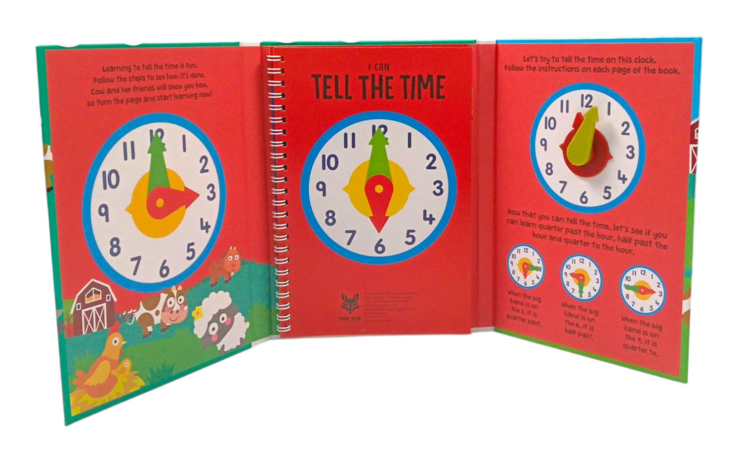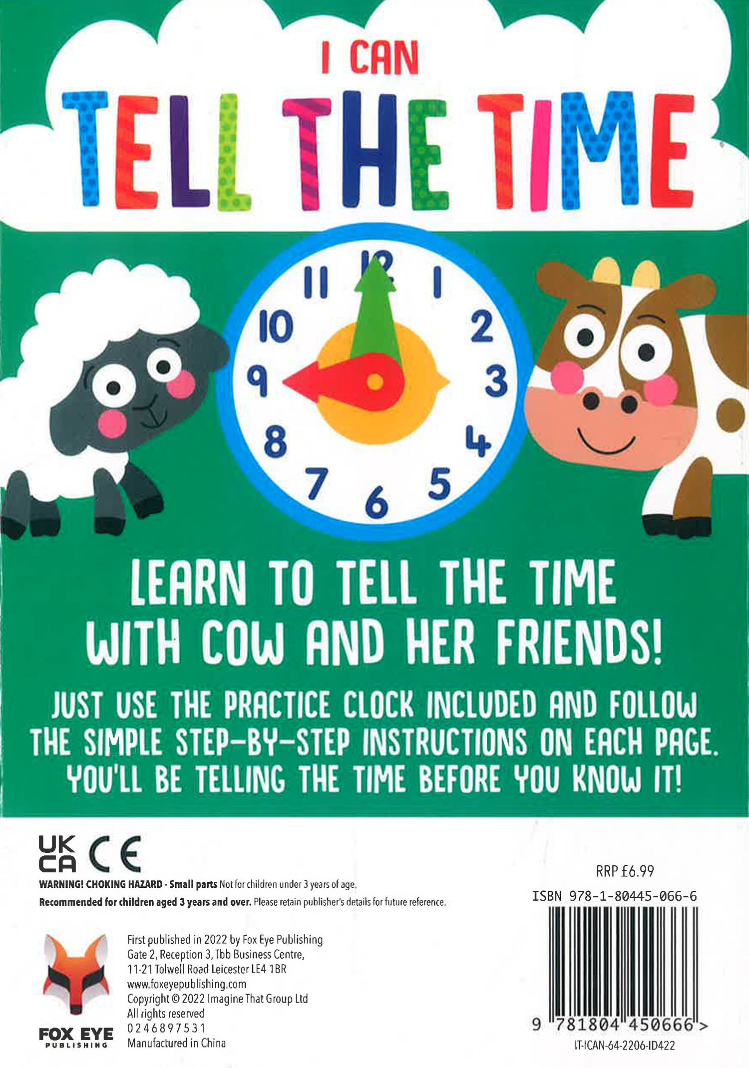 Children aged 4+ can learn to tell the time with this novelty activity book by Fox Eye Publishing. It includes a teaching clock on the inside back cover with moving minutes and hours hands to make learning to tell the time easy and fun!