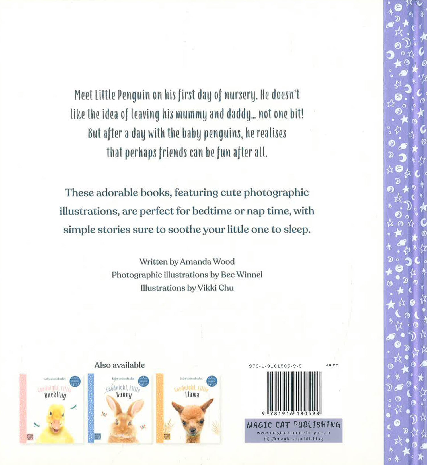 Meet Little Penguin, who doesn't want to go to nursery with the other penguin chicks. But soon he discovers that making friends can be fun! These adorable books, featuring cute photographic illustrations, are perfect for bedtime or nap time, with simple stories sure to soothe your little one to sleep and give them sweet dreams.