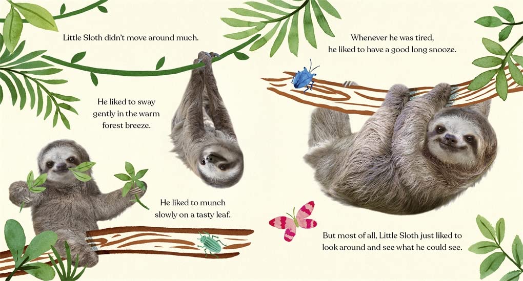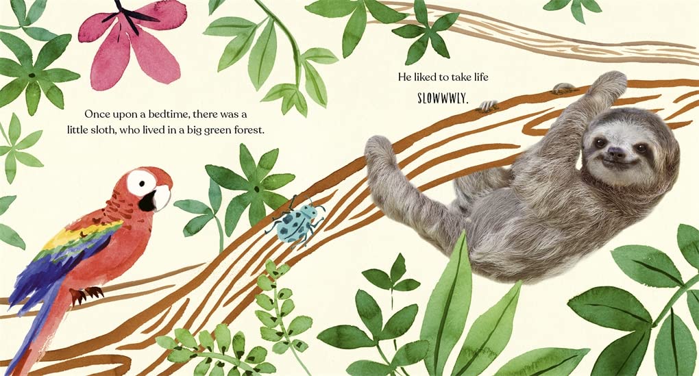 Little Sloth doesn’t like to be rushed. When the parrots squawk and flap about the jungle, Little Sloth sits patiently, waiting for the wonders of nature unfold, until eventually he witnesses the most wonderful event of the year! The adorable Baby Animal Tales series features cute photographic animals combined with stylish illustrations, making these simple stories perfect for the youngest reader’s bedtime or nap time.