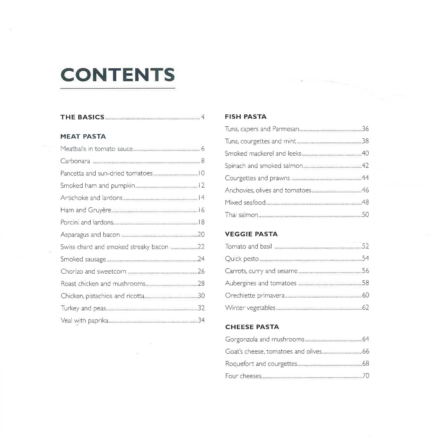 With a stylish design and chapters covering Meat, Seafood, Vegetarian and Cheese, Sabrina cooks up fresh, fun, and easy recipes, from a classic spaghetti with meatballs to interesting flavor combinations such as pasta with curried carrots and sesame seeds.