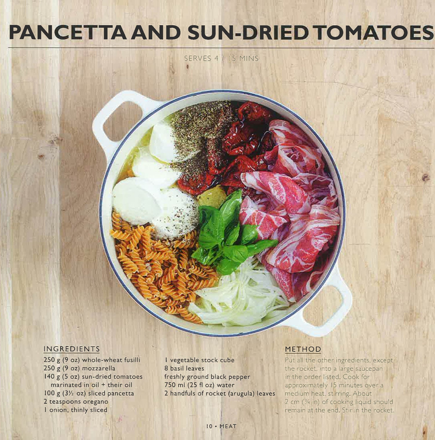 Sabrina's magic method works with a wide variety of pasta types and shapes. All the ingredients go into one pot, which cooks over a medium heat for 15 minutes. After resting off the heat for 5 minutes, all the dishes are ready to top and serve.
