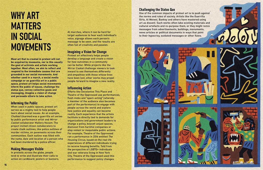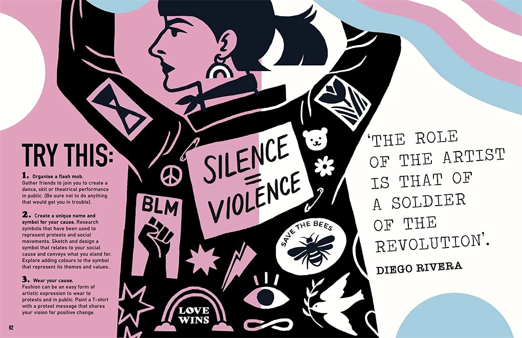 "Start making. Start being the change you want to see in this world." De Nichols From the psychedelic typography used in 'Make Love Not War' posters of the 60s, to the solitary raised fist, take a long, hard look at some of the most memorable and striking protest artwork from across the world and throughout history. With an emphasis on design, analyse each artwork to understand how colour, symbolism, technique, typography and much more play an important role in communication, and learn about some of the most influential historical movements. Tips and activities are also included to get you started on making some of your own protest art. Guided by activist, lecturer and speaker De Nichol's powerful own narrative and stunningly illustrated by a collaboration of young artists from around the world, including Diana Dagadita, Olivia Twist, Molly Mendoza, Raul Oprea and Diego Becas, Art of Protest is as inspiring as it is empowering.