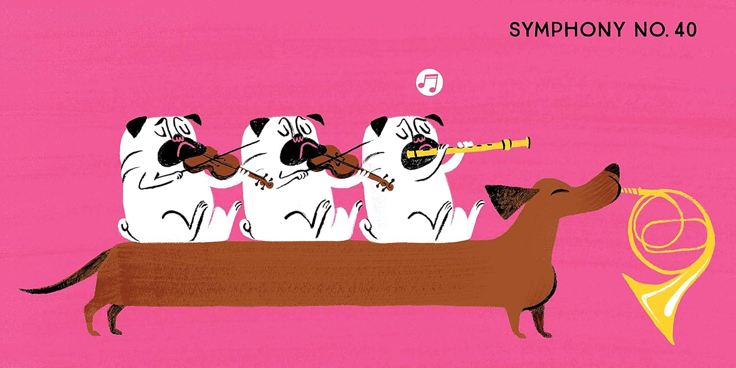 A caterpillar plays Piano Sonata No. 11 while an elephant listens on. Three pugs accompany a wiener dog playing Symphony No. 40. These are just two of the wonderfully silly spreads in this homage to Mozart that's perfect for mini music lovers! Children will giggle over the silly illustrations as well as love pushing the sound buttons over and over. What a great way to learn about Mozart!