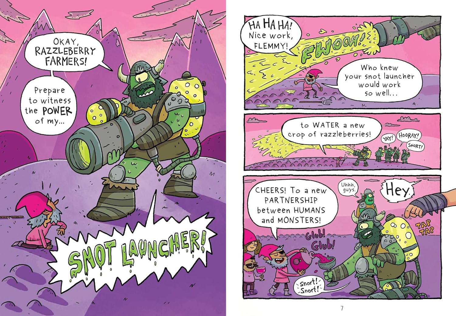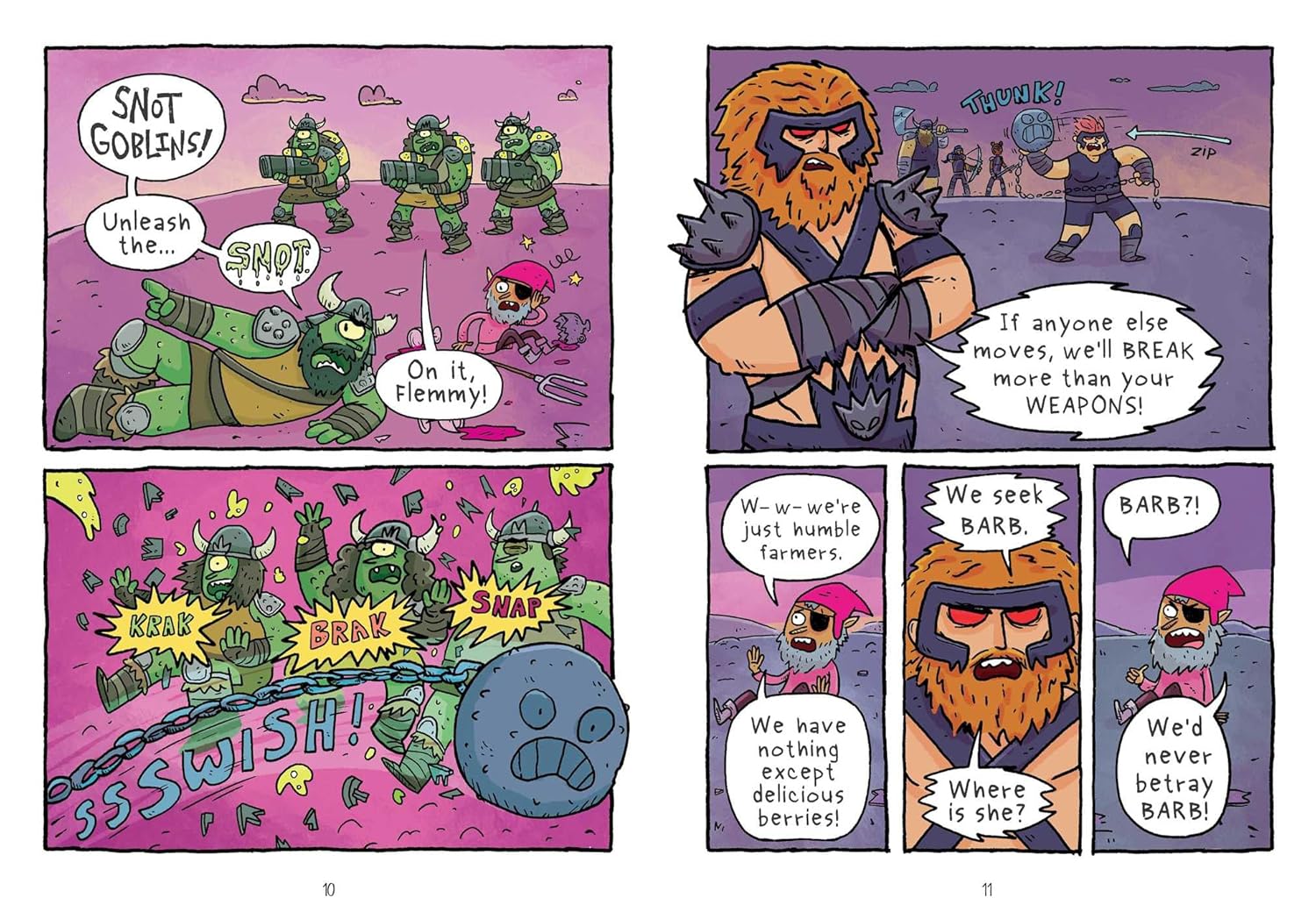 Barb is a Berzerker, part of an elite crew of warriors who protect the land of Bailiwick from the scourge of monsters. The evil Witch Head has captured all the adult Berzerkers and Barb’s the only one who can save them. But she’s not alone—Barb’s got her own amateur crew of would-be zerks, made up of farmers, monsters, and her best pal Porkchop the yeti.