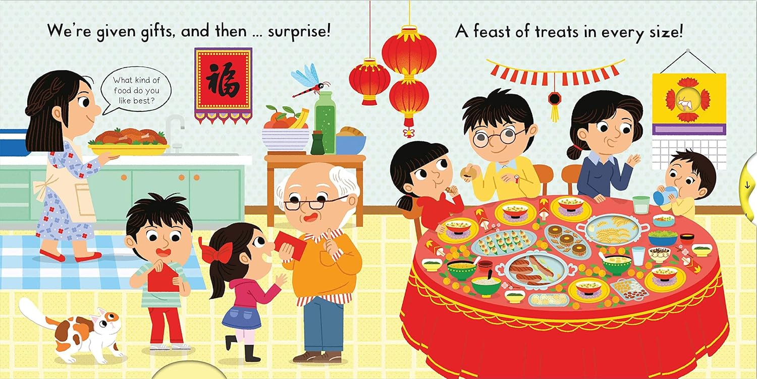 Little ones can push, pull and slide the tabs to join in the celebrations in Busy Chinese New Year! Make the Lion and Dragon dance, enjoy a family banquet and watch the spectacular fireworks.