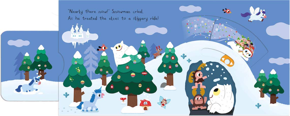 A first novelty Christmas board book about a magical snowman, with push, pull and turn mechanisms.