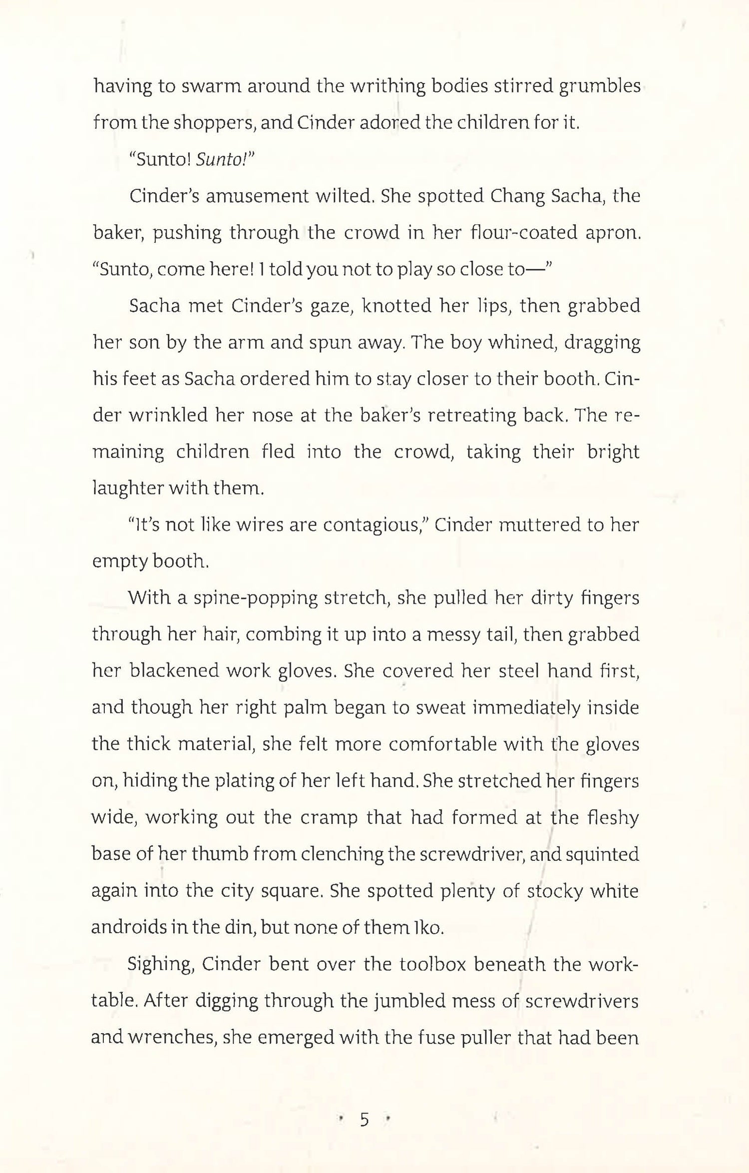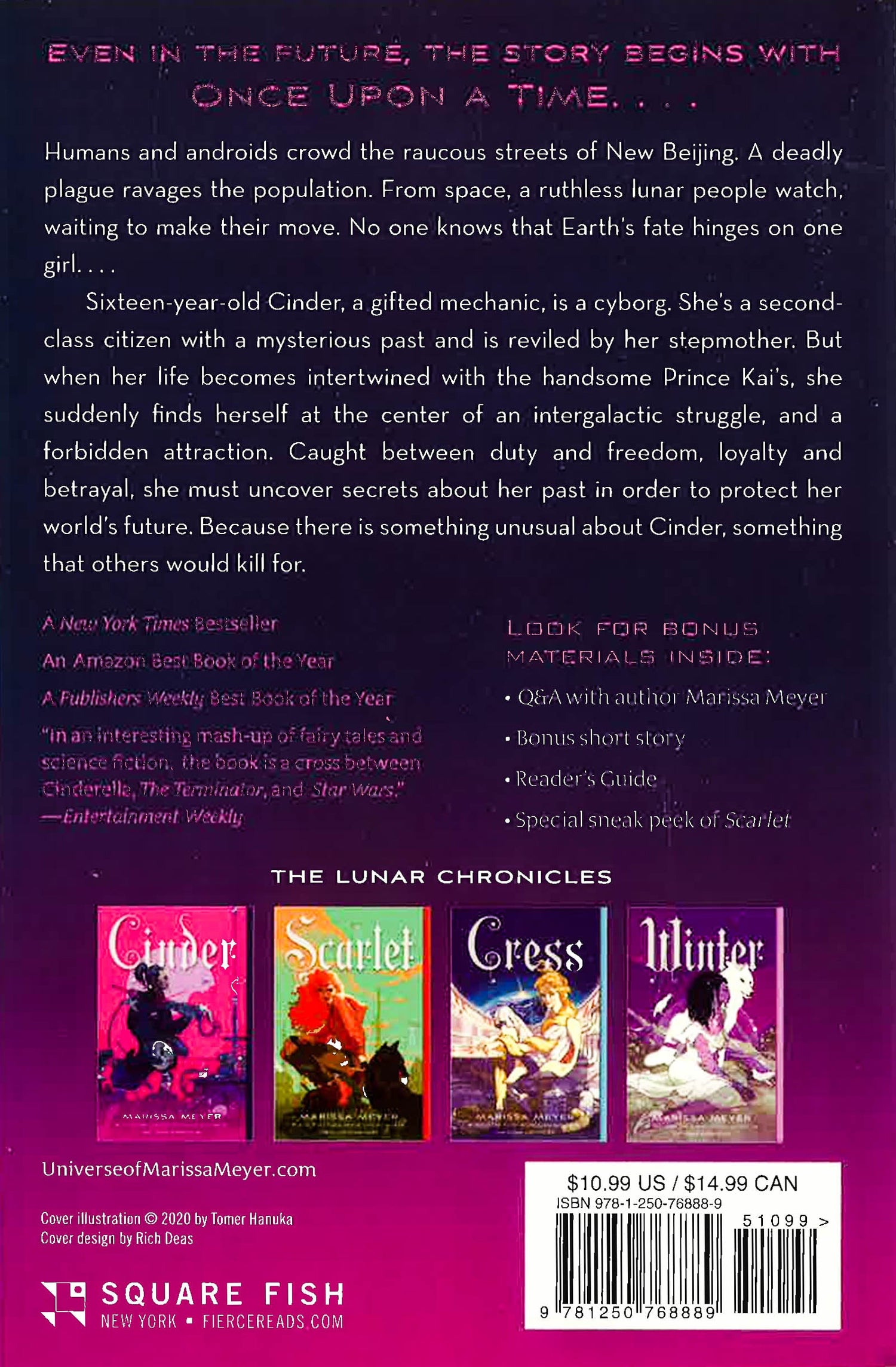 The first book in the #1 New York Times- and USA Today-Bestselling Lunar Chronicles series by Marissa Meyer like you've never seen it before, now with new cover art! See where the futuristic YA fairytale saga all began, with the tale of a teenage cyborg who must fight for Earth's survival against villains from outer space.