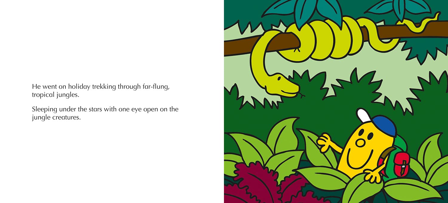 Mr Adventure loves going on holiday to exciting places that would make your hair stand on end. But this year he doesn’t have enough money to go on one of his wild adventures. He needs to get a job, but what job will be exciting enough for Mr Adventure?