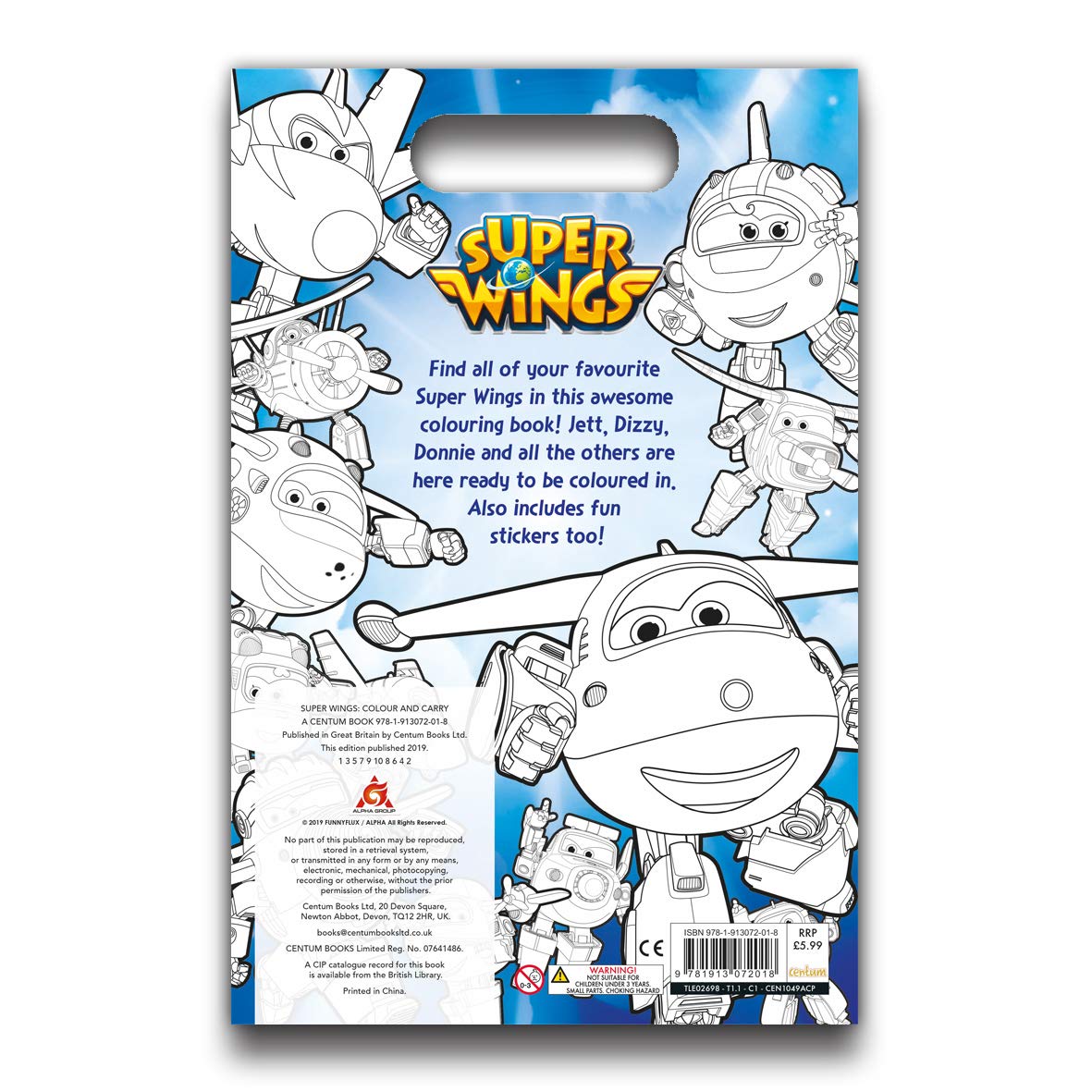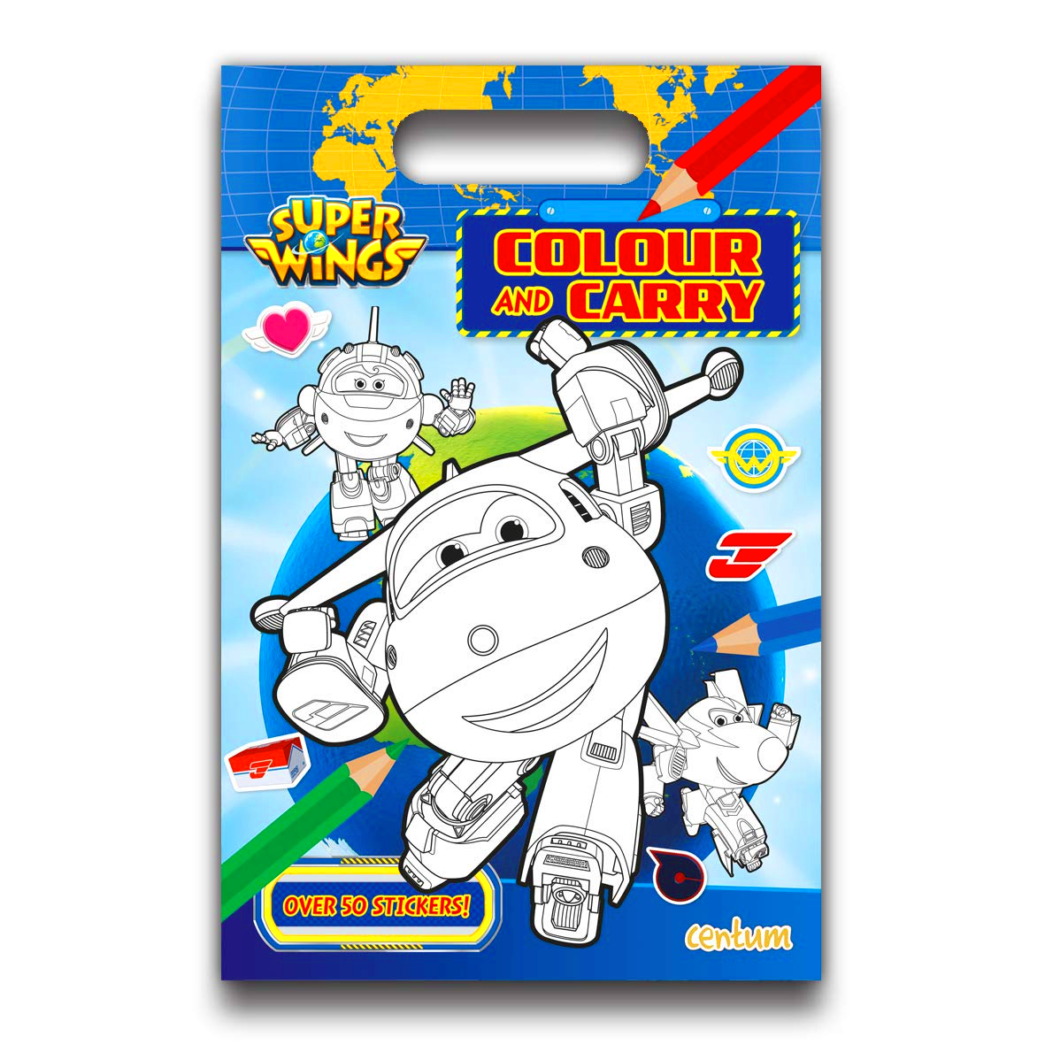 Packed with fun colouring pages for all Super Wings fans. Includes a sheet of stickers to customise your pictures and for free play too. Useful die-cut handle for colouring fun on the move