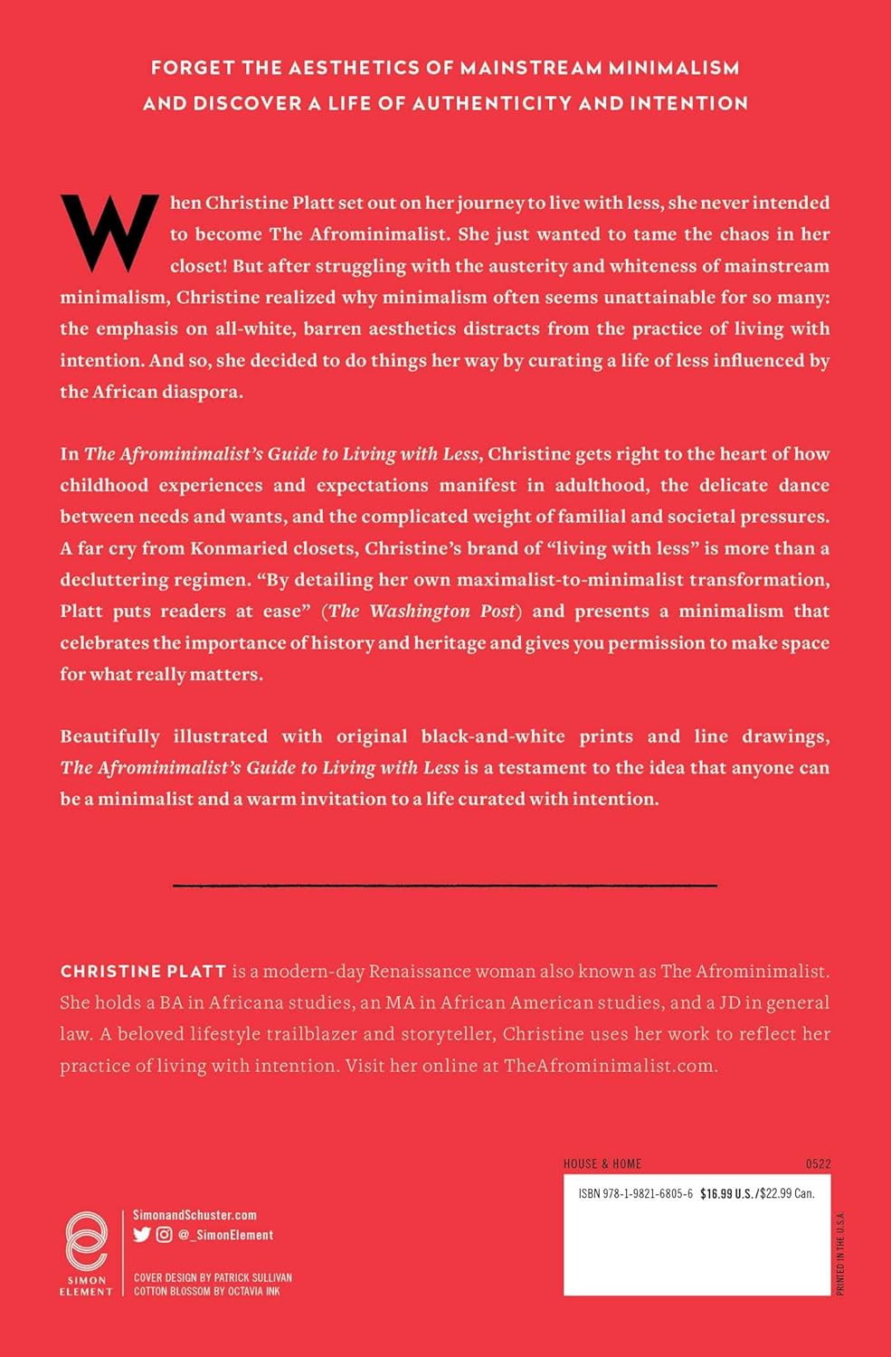 In The Afrominimalist’s Guide to Living With Less, Christine gets right to the heart of how childhood experiences and expectations manifest in adulthood, the delicate dance between needs and wants, and the complicated weight of familial and societal pressures. A far cry from Konmaried closets, capsule wardrobes, and conspicuous consumption, Christine’s brand of “living with less” is more than a decluttering regimen. “By detailing her own maximalist-to-minimalist transformation, Platt puts readers at ease” (The Washington Post) and presents a radical revisioning of minimalism, one that celebrates the importance of history and heritage, and gives you permission to make space for what really matters…your way.