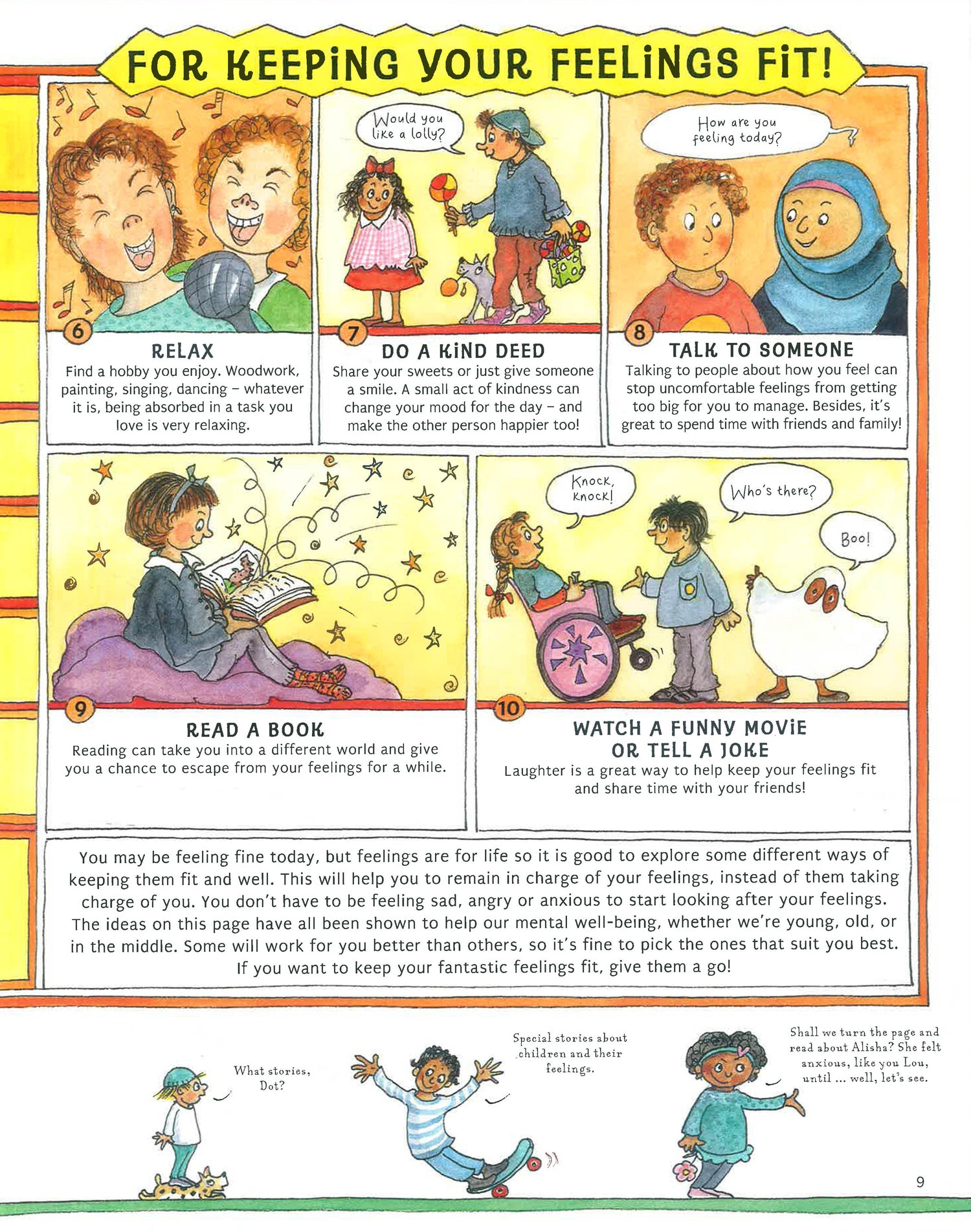 How do you feel today? Whether you're happy, sad or anything in-between, this book is the perfect guide to understanding and celebrating all your feelings! In colourful comic-strip stories, explore a whole range of emotions and discover ways to cope when any feeling becomes overwhelming. Packed with top tips for mental wellbeing and a first aid box for feelings, this is a helpful and engaging guide celebrating the importance of good mental health.