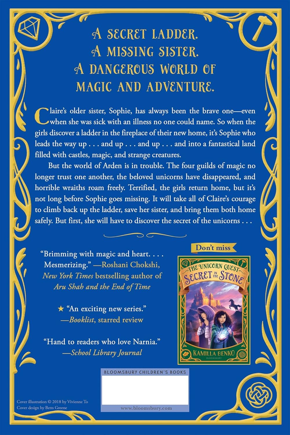 There, they find a world in turmoil. The four guilds of magic no longer trust each other, the beloved unicorns have disappeared, and terrible wraiths roam freely. Scared, the girls return home. But when Sophie vanishes in the night, it will take all of Claire's courage to climb back up the ladder, find her sister, and uncover the unicorns' greatest secret.