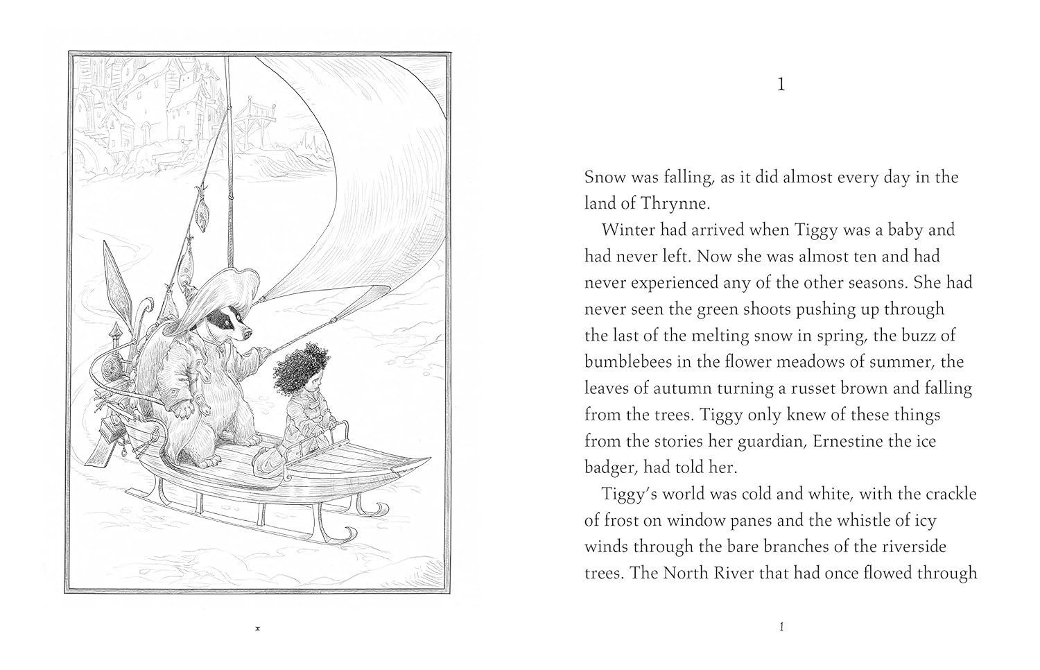 The Guardians of Magic disappeared ten years ago, leaving the Kingdom of Thrynne in the icy grip of a powerful sorceress. Most people have fled in desperate search of warmer lands, escaping the Ice Monsters that roam the streets. Meanwhile, young Tiggy Thistle lives hidden and safe with a kindly Badger until the day she meets one of the crafty Stiltskin brothers and she has to run from her happy home. So begins Tiggy's quest to find Zam, Phoebe and Bathsheba – the lost Guardians and their beautiful Cloud Horses – the only people, she believes, who can save Thrynne from the curse of endless winter.