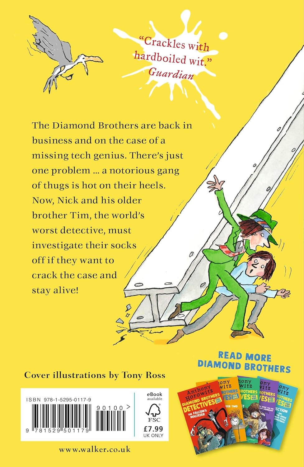 Private investigators Tim and Nick Diamond haven’t had a case for three months and are down to their last cornflake. So when a glamorous woman comes into their office offering them a pile of cash to find her missing father, they think Christmas has come – only it turns out they are the turkeys! Before they know it, they are caught up in a case involving bike-riding hitmen, superhackers and a sinister far right organisation, the White Crusaders. The Diamond Brothers are in the soup and in it over their heads. With thrills and spills, and jokes on every page, this new Diamond Brothers novel will have young readers howling with laughter.