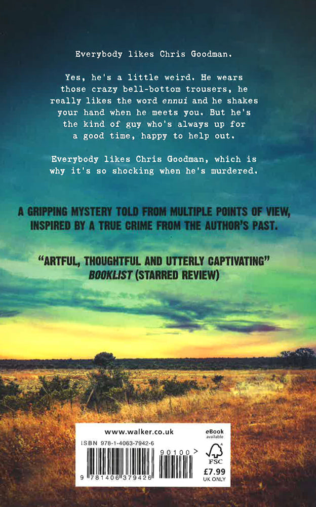 Everybody likes Chris Goodman. Sure, he’s a little odd. He wears those funny bell-bottoms and he really likes the word ennui and he shakes your hand when he meets you, but he’s also the kind of guy who’s always up for a good time, always happy to lend a hand. Everybody likes him, which makes it especially shocking when he’s murdered. Here, in a stunning multi-voiced narrative – including the perspective of the fifteen-year-old killer – and based on a true and terrible crime that occurred when he was in high school, author Allan Wolf sets out to answer the first question that comes to mind in moments of unthinkable tragedy: how could a thing like this happen?