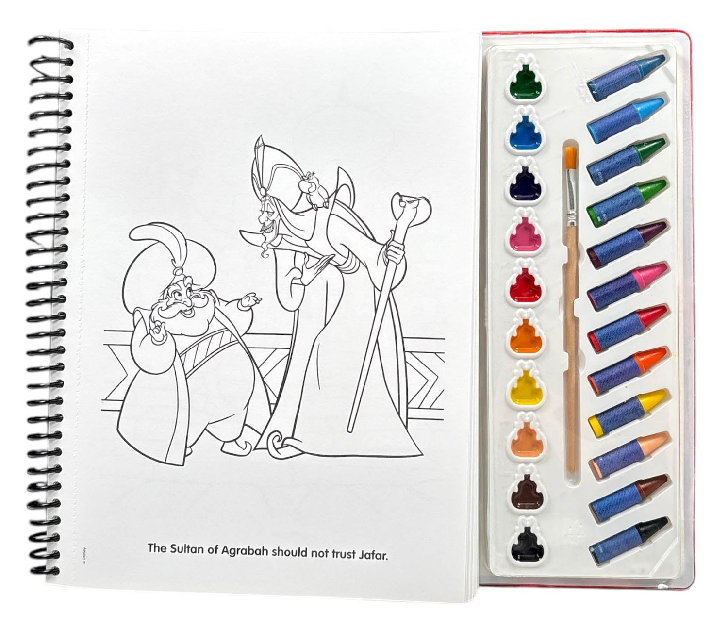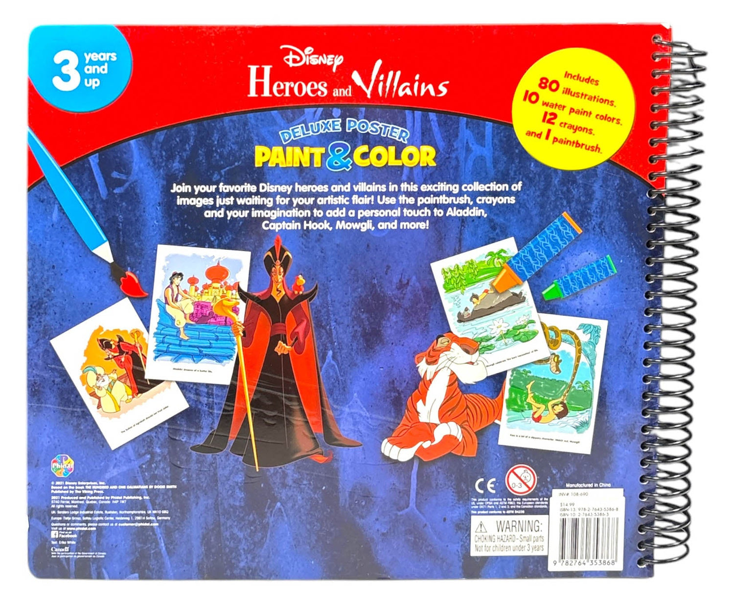 Join your favorite Disney heroes and villains in this exciting collection of images just waiting for your artistic flair! Use the paintbrush, crayons and your imagination to add a personal touch to Aladdin, Captain Hook, Mowgli, and more!