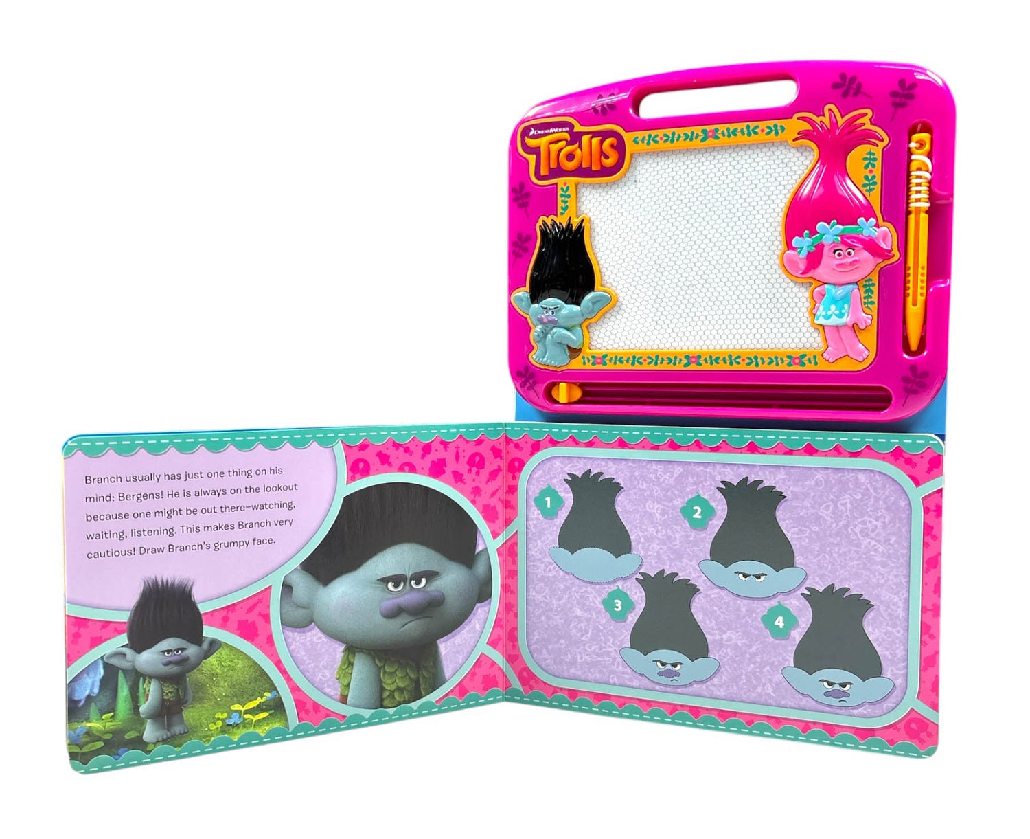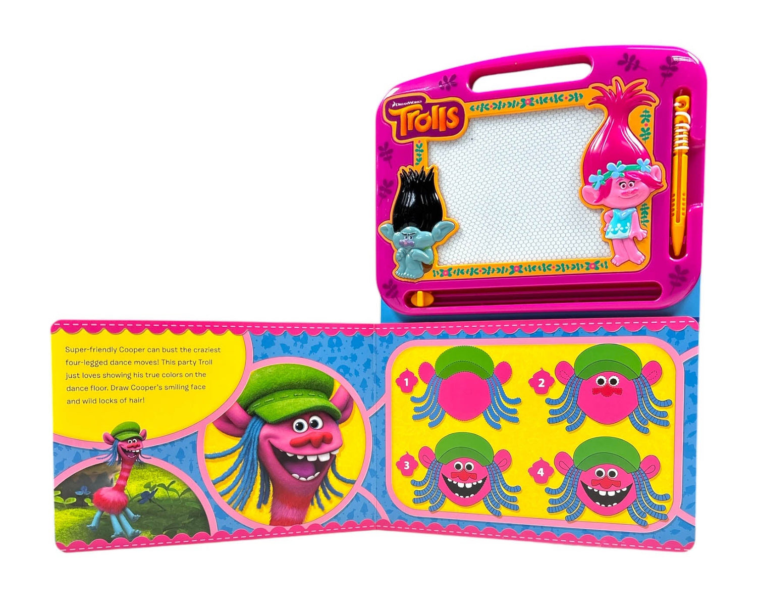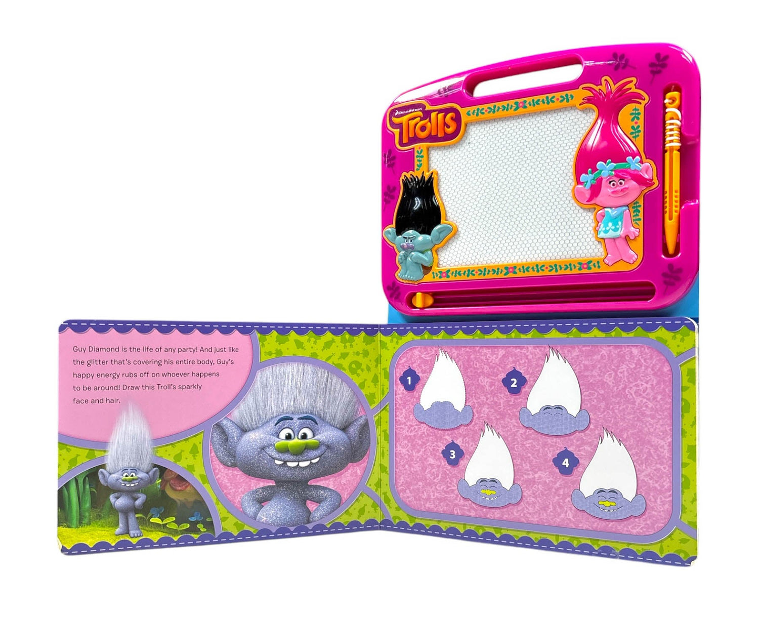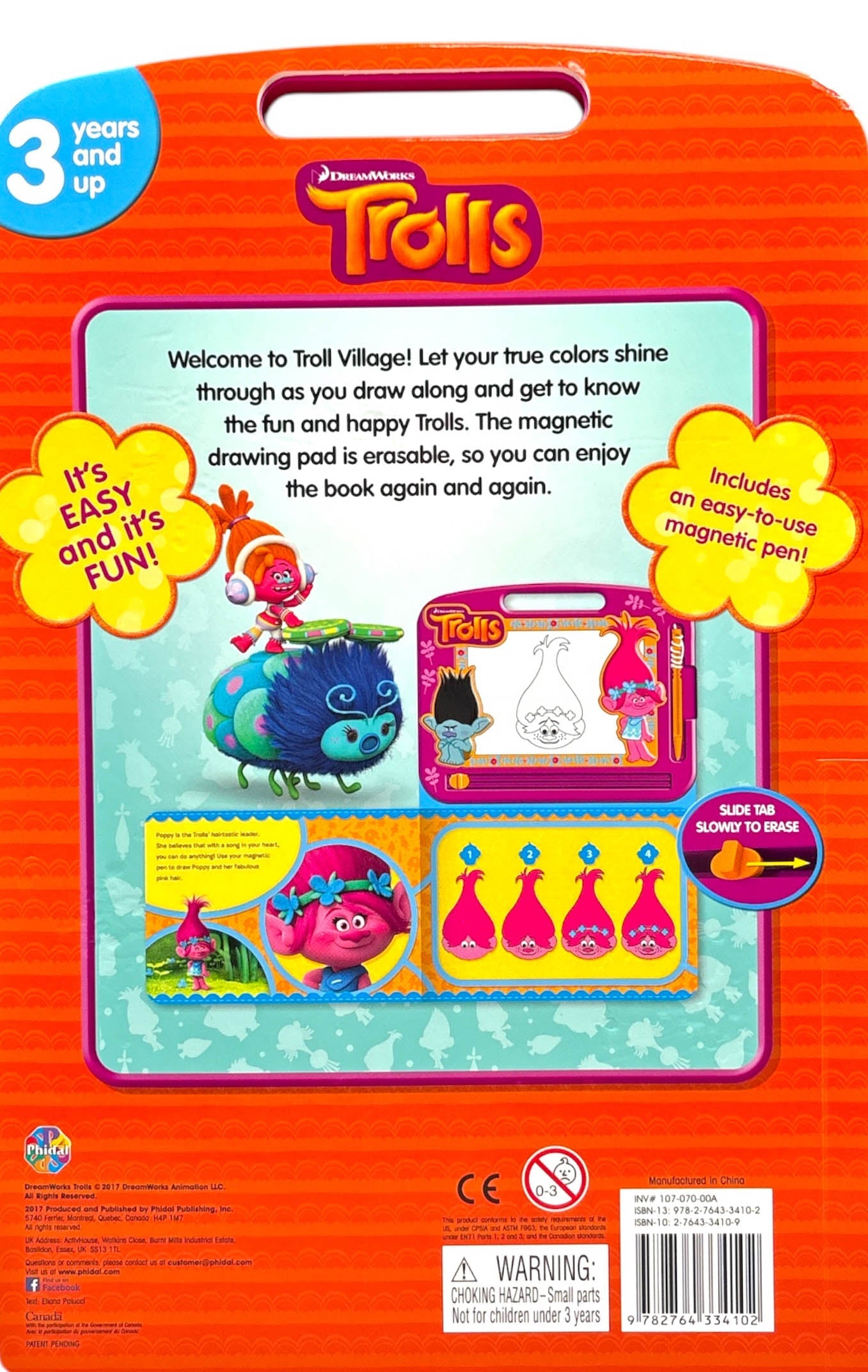 Welcome to Troll Village! Let your true colors shine through as you draw along and get to know the fun and happy Trolls. The magnetic drawing pad is erasable, so you can enjoy the book again and again. Includes a magnetic pen.