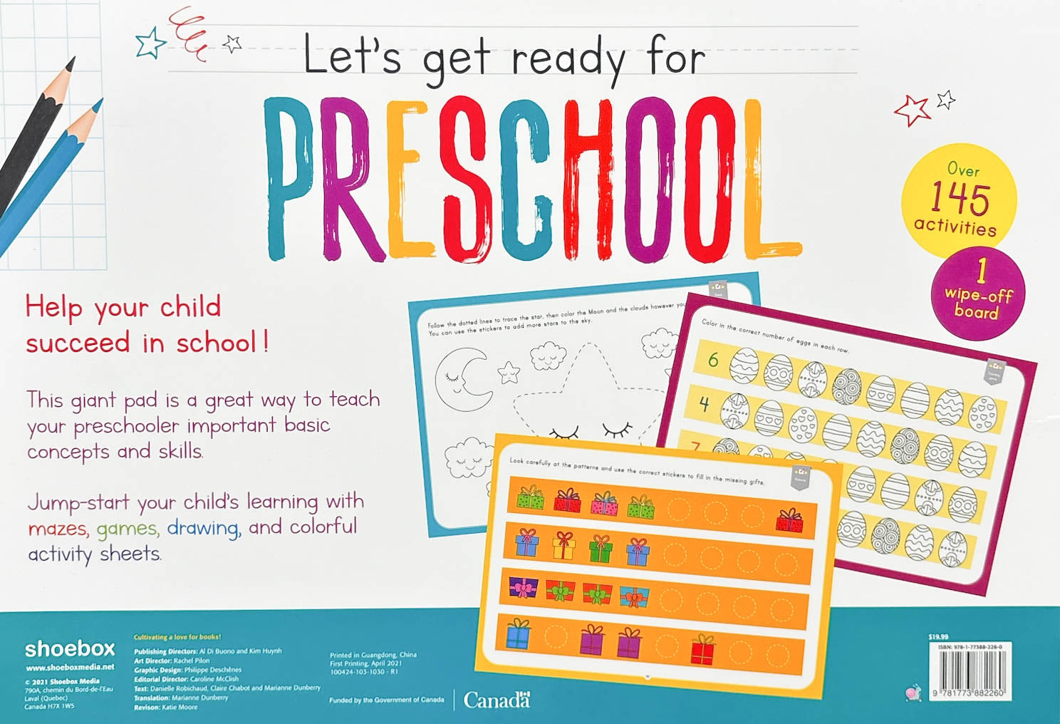 These giant pads will help children by teaching and revising key concepts like the ABC’s, numbers, colors, shapes and much more! Each title offers over 200 activities and 100 stickers for preschool!