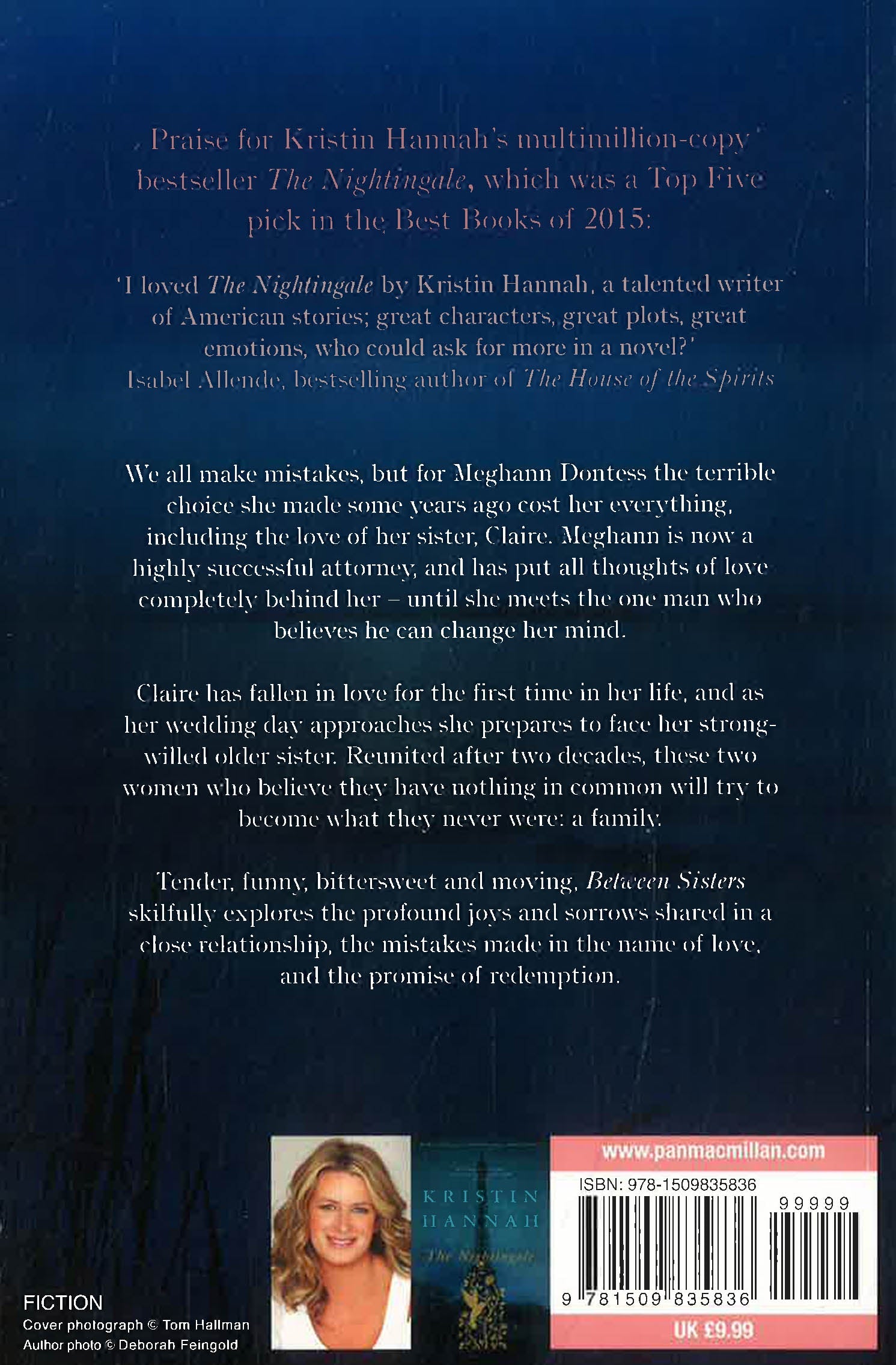 Tender, funny, bittersweet and moving, Kristin Hannah's Between Sisters skilfully explores the profound joys and sorrows shared in a close relationship, the mistakes made in the name of love, and the promise of redemption.