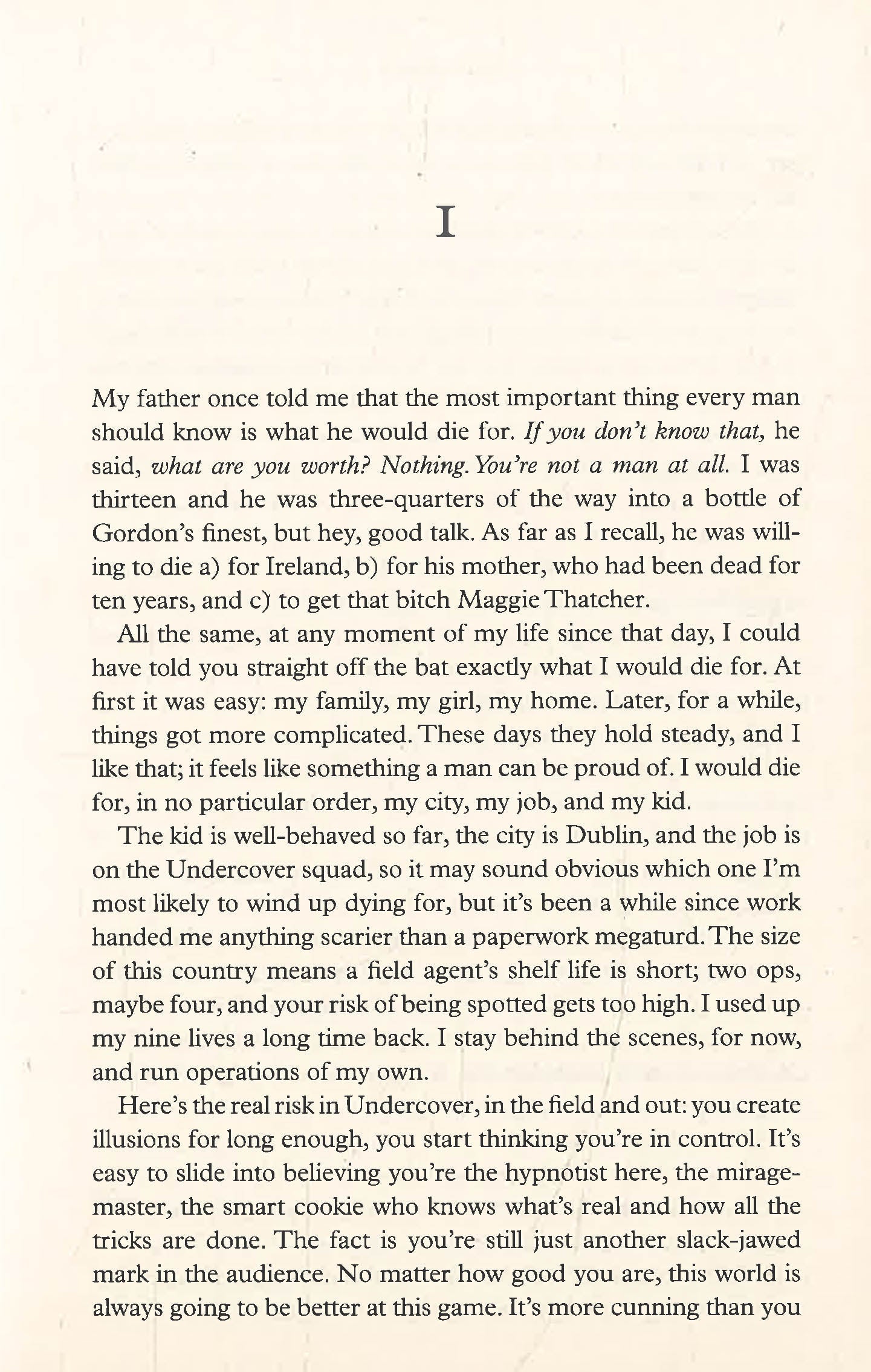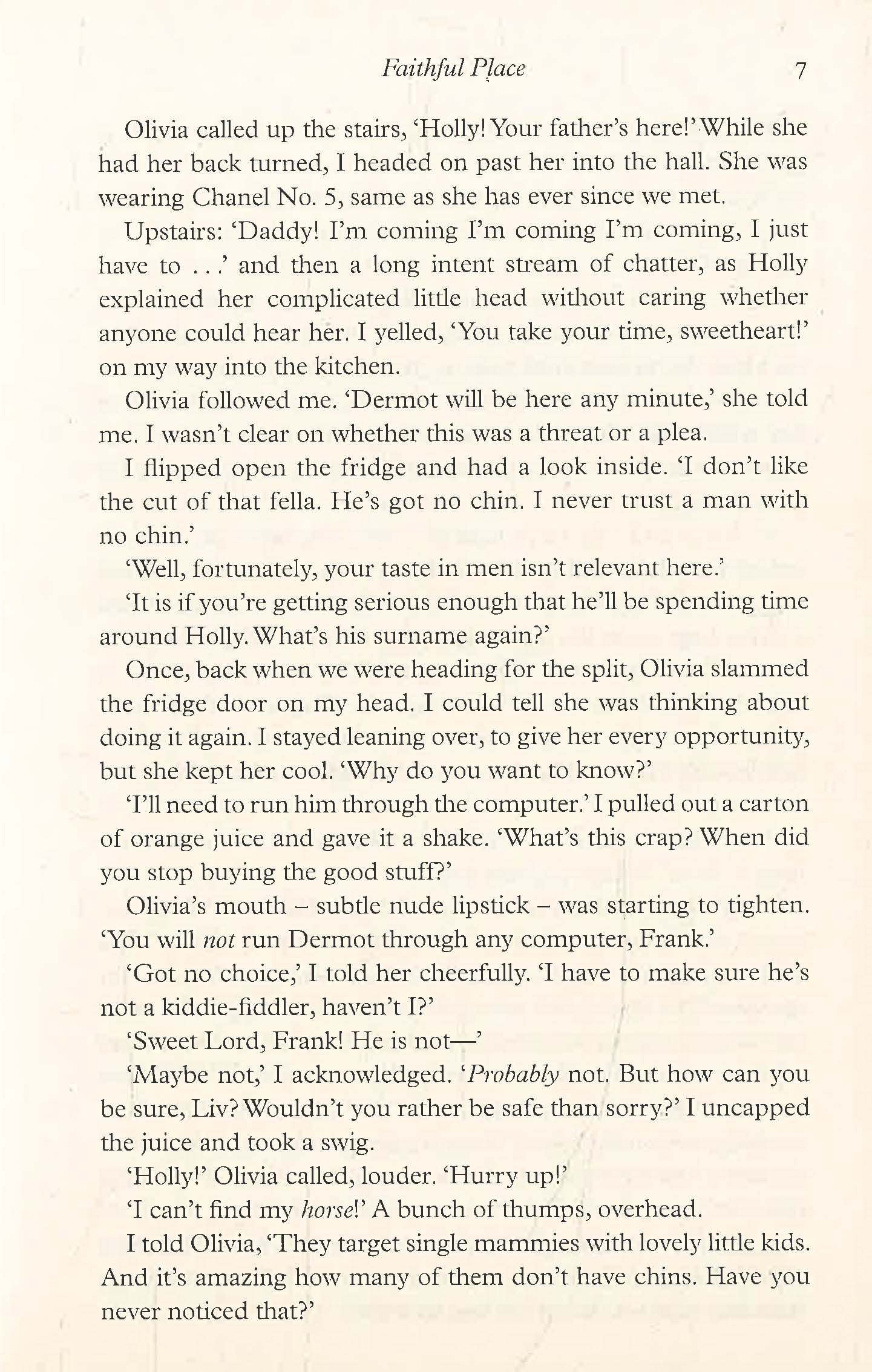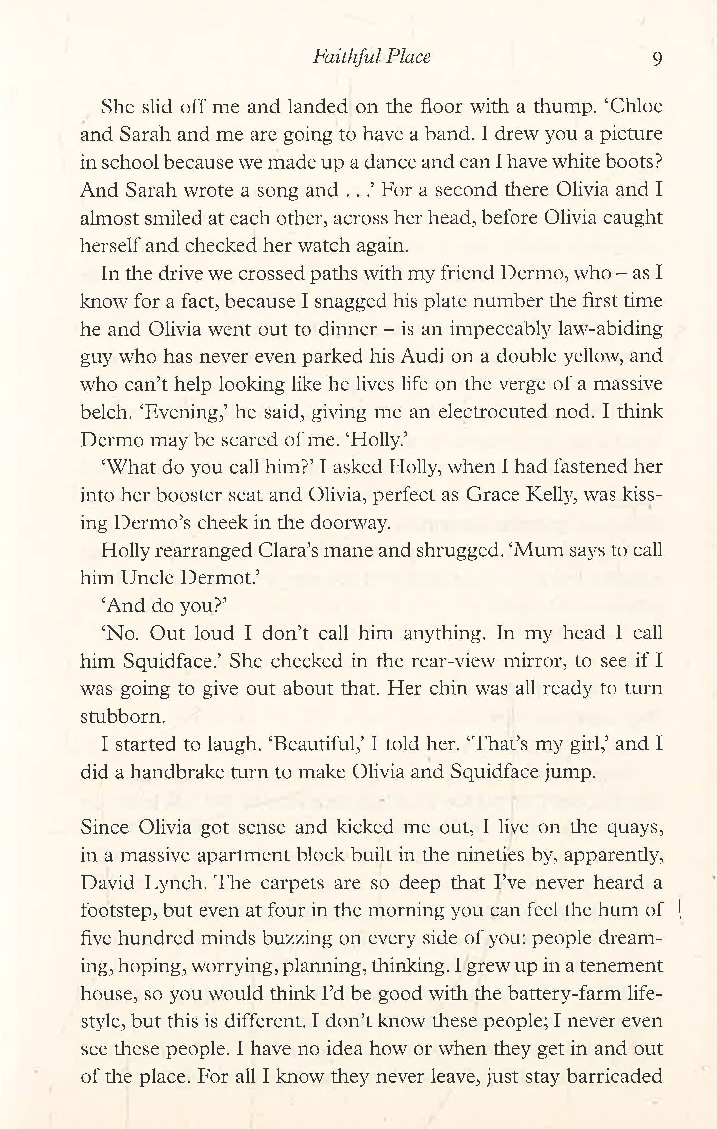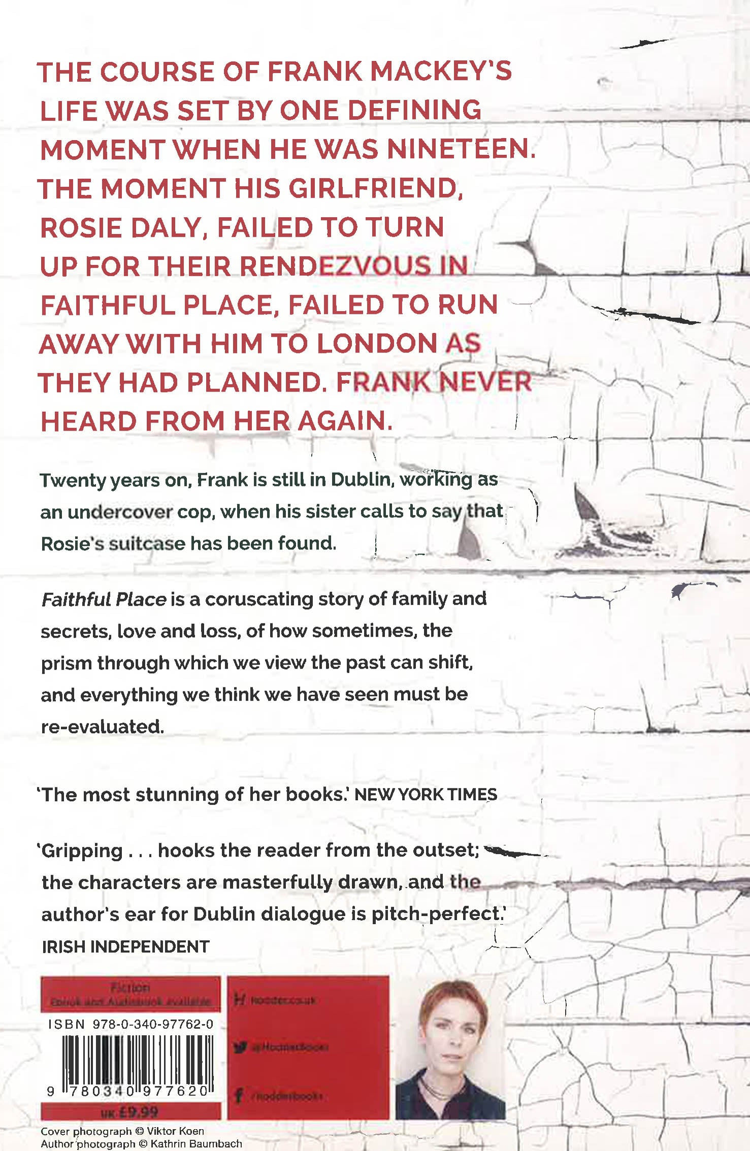 The course of Frank Mackey's life was set by one defining moment when he was nineteen. The moment his girlfriend, Rosie Daly, failed to turn up for their rendezvous in Faithful Place, failed to run away with him to London as they had planned. Frank never heard from her again. Twenty years on, Frank is still in Dublin, working as an undercover cop. He's cut all ties with his dysfunctional family. Until his sister calls to say that Rosie's suitcase has been found. Frank embarks on a journey into his past that demands he reevaluate everything he believes to be true.